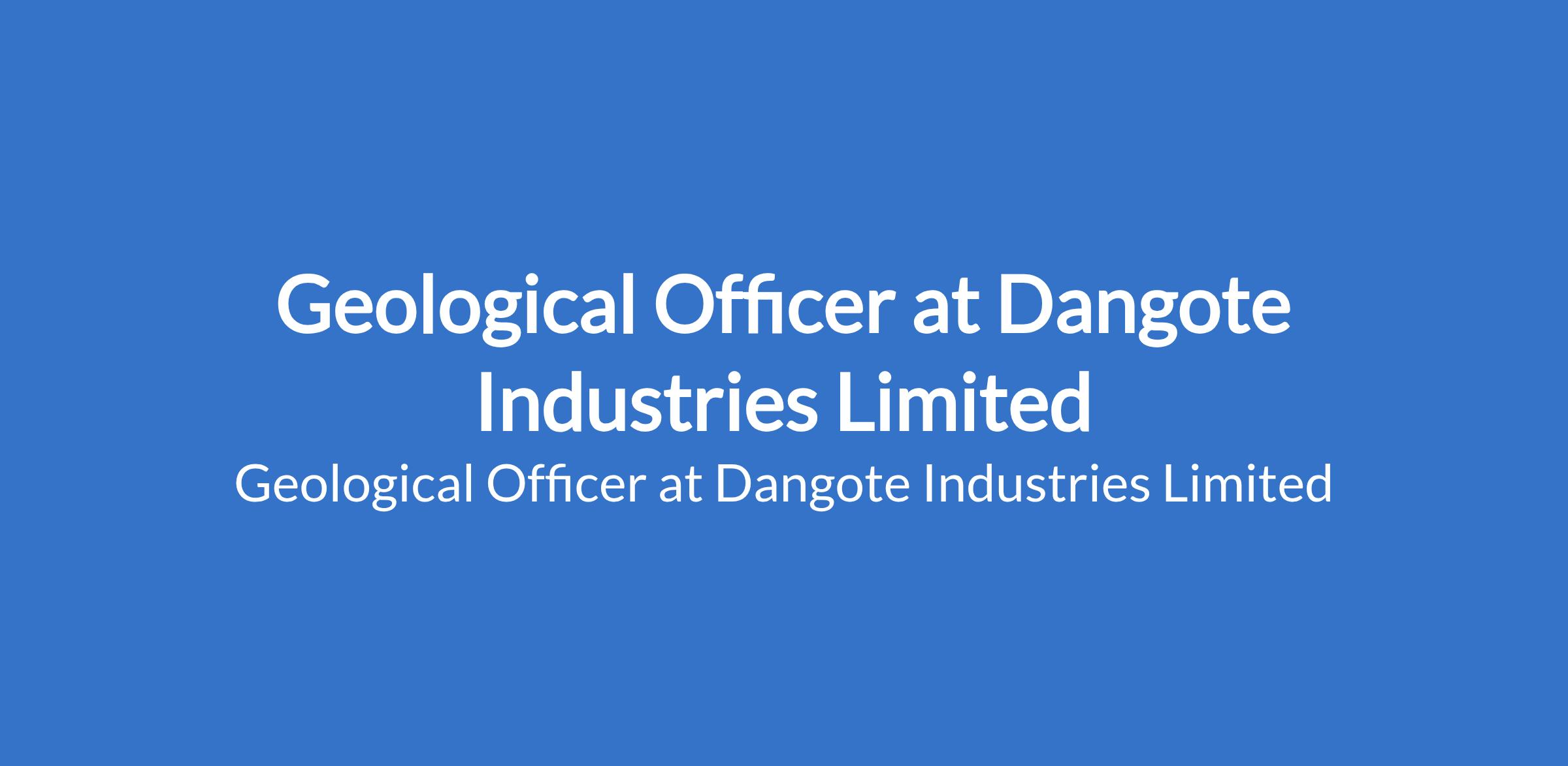 Dangote Industries Limited is recruiting to fill the position of: Geological Officer. The position is located in Itori Mines, Ogun State. Interested candidates should possess an HND / BSc in Geology with a minimum of 6 years experience in mining geology and exploration Or an MSc / MEng in Geology with a minimum of 3 years experience in mining geology and exploration.
