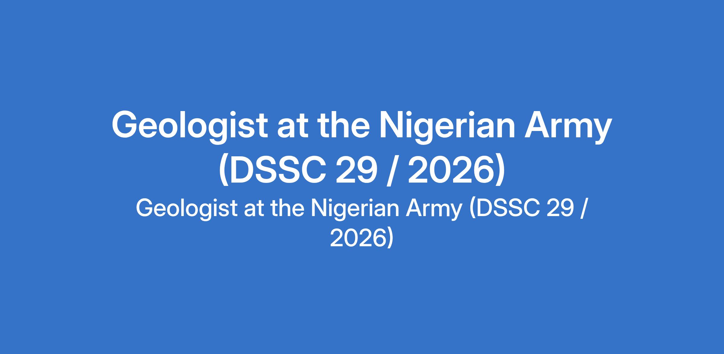 The Nigerian Army invites applications from eligible Nigerians for the Direct Short Service Commission (DSSC) position of: Geologist. Interested candidates should possess a B.Sc, B Eng (Second Class Upper) degree or HND (Upper Credit) and must be registered with the Nigerian Society of Engineers and Council for the Regulation of Engineering in Nigeria (COREN) or regulating professional bodies.