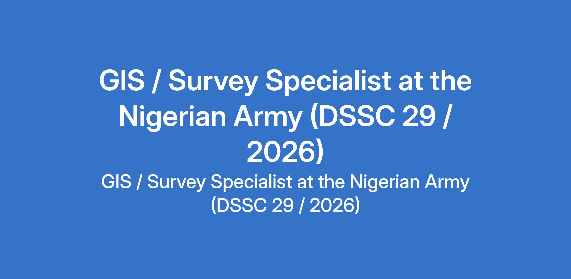 The Nigerian Army invites applications from eligible Nigerians for the Direct Short Service Commission (DSSC) position of: GIS / Survey Specialist. Interested candidates should possess a B.Sc, B Eng (Second Class Upper) degree or HND (Upper Credit) and must be registered with the Nigerian Society of Engineers and Council for the Regulation of Engineering in Nigeria (COREN) or regulating professional bodies.