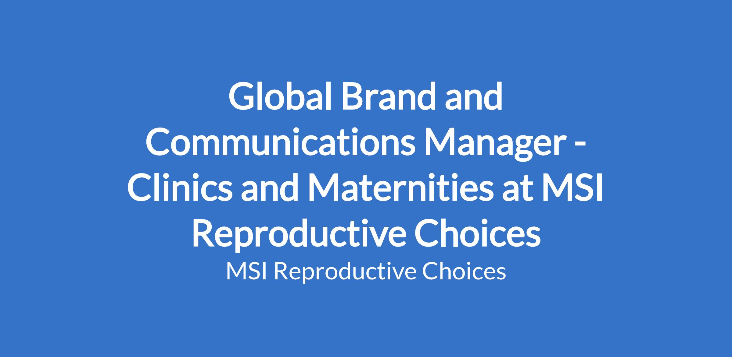 The Global Brand and Communications Manager - Clinics and Maternities is responsible for developing, stewarding, and strengthening the MSI clinic network brand across multiple countries in Africa and Asia which includes both women's health outpatient clinics as well as maternity hospitals. The role ensures that MSI clinics are trusted, recognisable, and consistently experienced as high-quality, client-centred healthcare providers, while allowing for appropriate local adaptation across diverse cultural, regulatory, and market contexts.