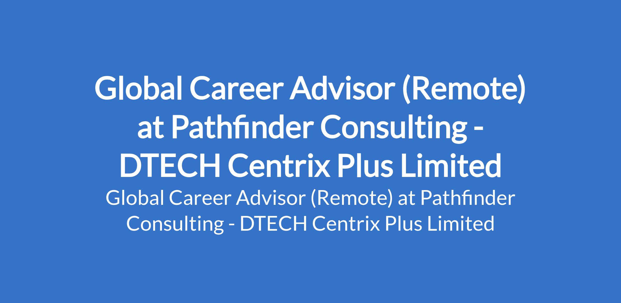 DTECH Centrix Plus Limited - Our client, Pathfinder Consulting, is recruiting to fill the position of: Global Career Advisor. This is a remote job. Salary: N350,000 - N400,000 monthly. Interested candidates should possess relevant qualifications with 35+ years of proven experience as a Career Coach, Employability Specialist, or Talent Development Consultant.