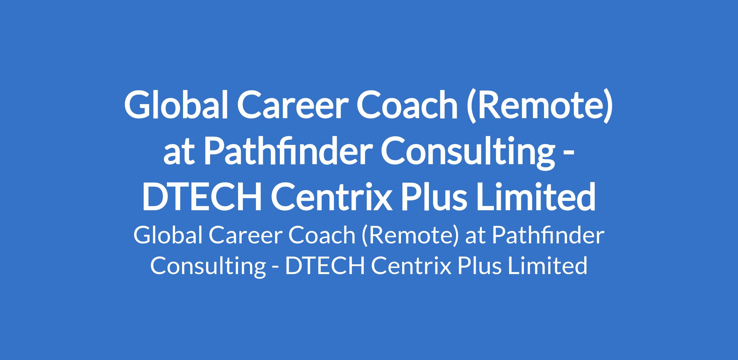 DTECH Centrix Plus Limited - Our client, Pathfinder Consulting, is recruiting to fill the position of: Global Career Coach. The position is located in Lagos State (Remote). Salary: N350,000 - N400,000 monthly. Interested candidates should possess relevant qualifications with 35 years of proven experience as a Career Coach, Employability Specialist, or Talent Development Consultant.