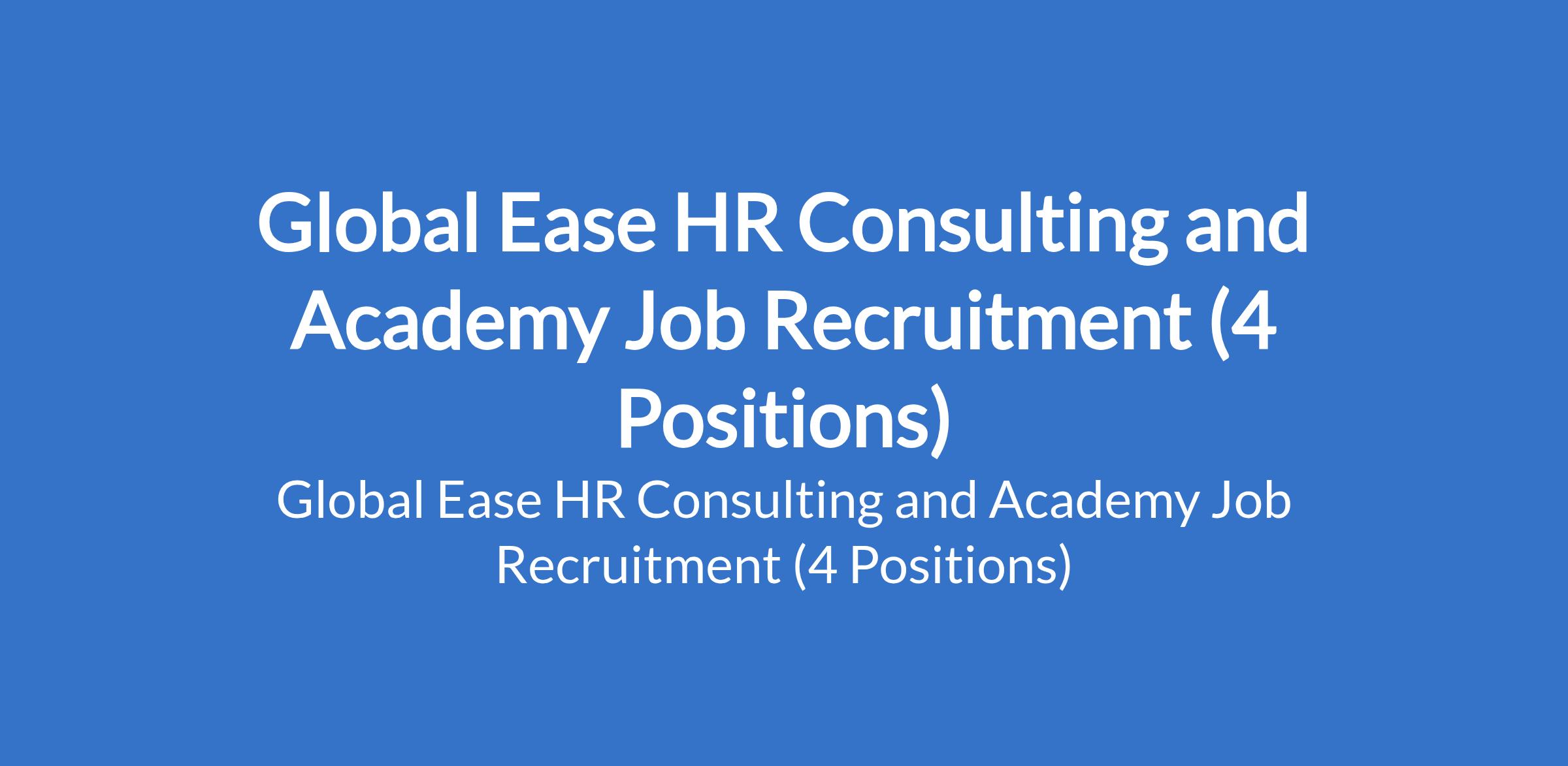 Global Ease HR Consulting and Academy Job Recruitment (4 Positions)