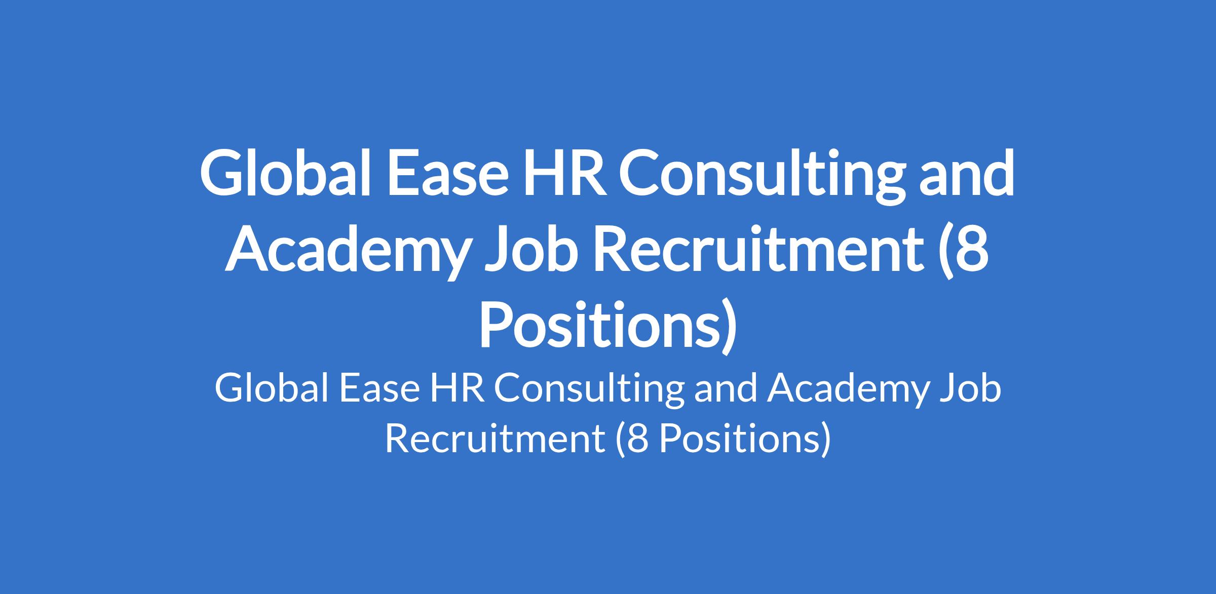 Global Ease HR Consulting and Academy is recruiting suitable candidates to fill the following positions in Abuja (FCT) & Lagos State: Customer Service Representative, Operations Officer, Logistics Monitoring Officer, Account Officer, Digital Marketing Officer, Executive Assistant, Study Abroad Officer / Sales Representative, and Baker / Decorator.