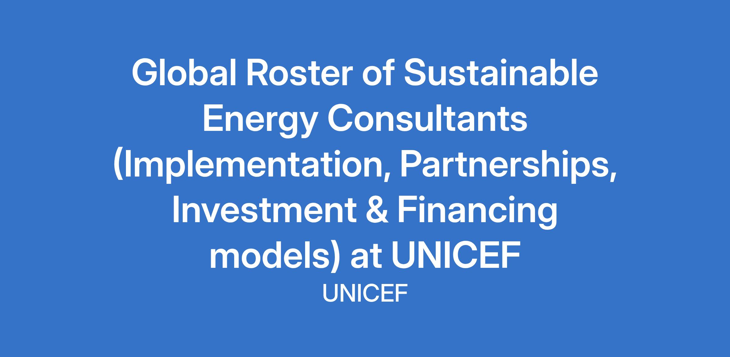 Global Roster of Sustainable Energy Consultants (Implementation, Partnerships, Investment & Financing models) at UNICEF