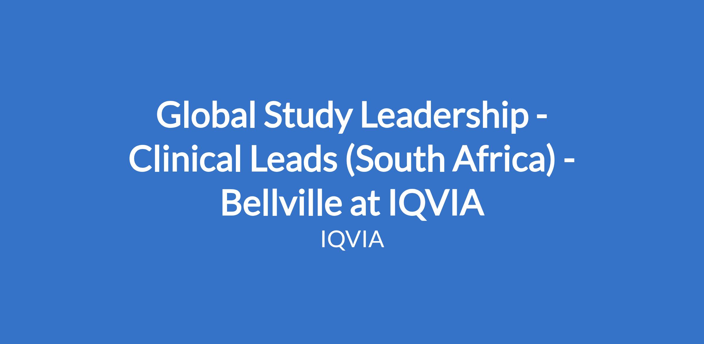 Global Study Leadership - Clinical Leads (South Africa) - Bellville at IQVIA