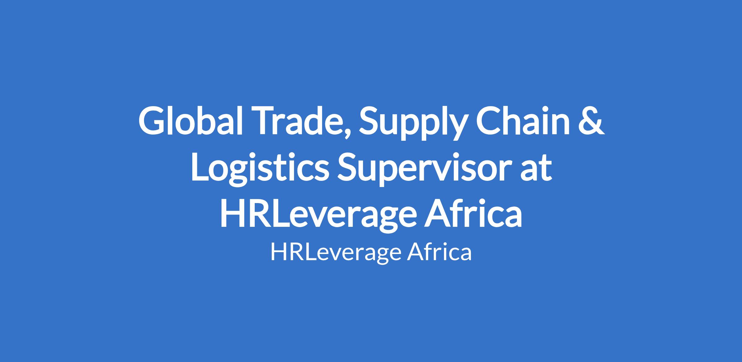 Global Trade, Supply Chain & Logistics Supervisor at HRLeverage Africa