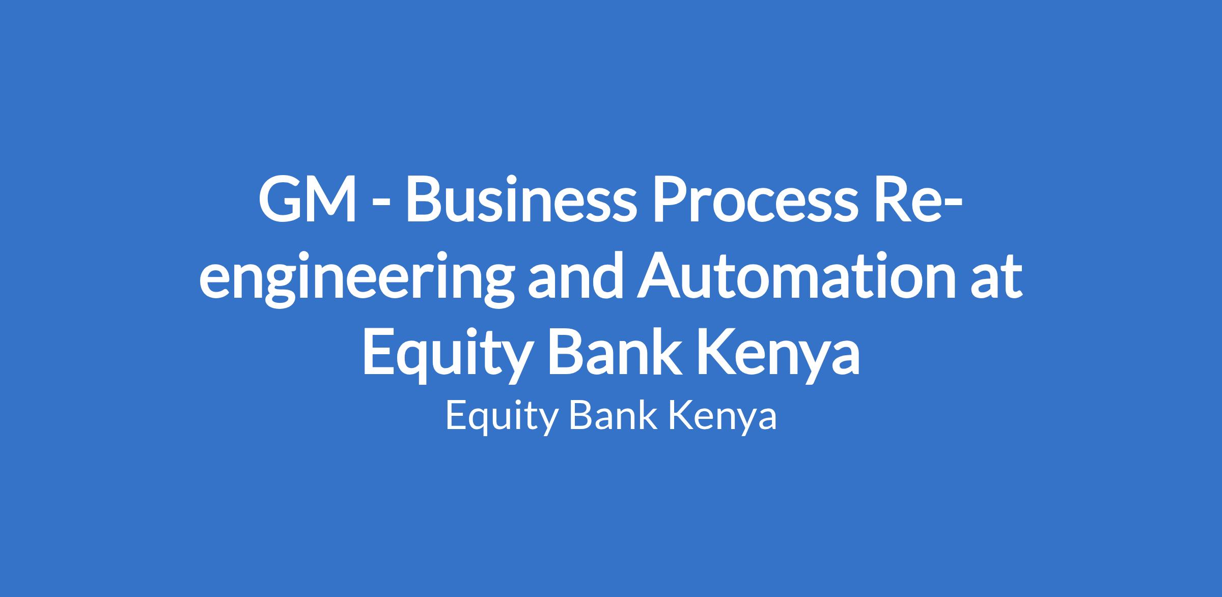 GM - Business Process Re-engineering and Automation at Equity Bank Kenya