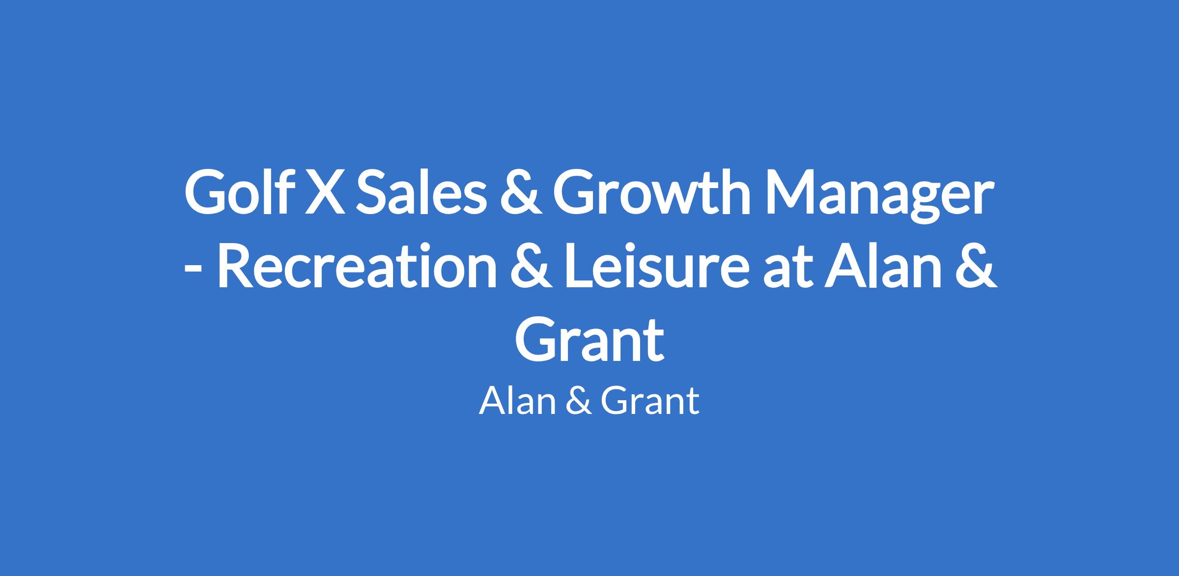 Golf X Sales & Growth Manager - Recreation & Leisure at Alan & Grant