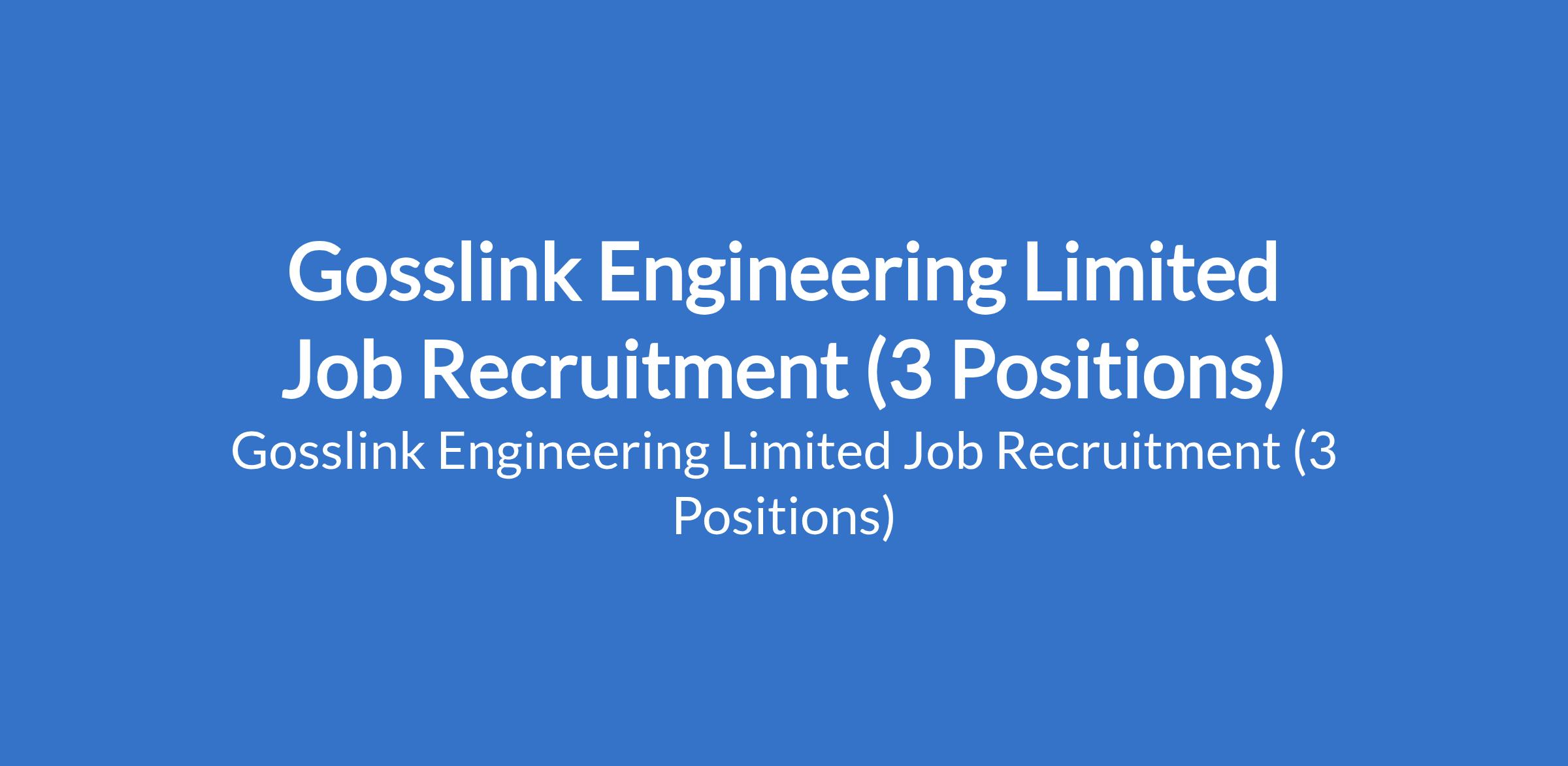 Gosslink Engineering Limited is recruiting suitably qualified candidates to fill the following positions in Lagos State: Electrical Engineer for Bill of Quantity / Project Planning Manager, Industrial Electrician, and Site Engineer (Electrical Engineering).