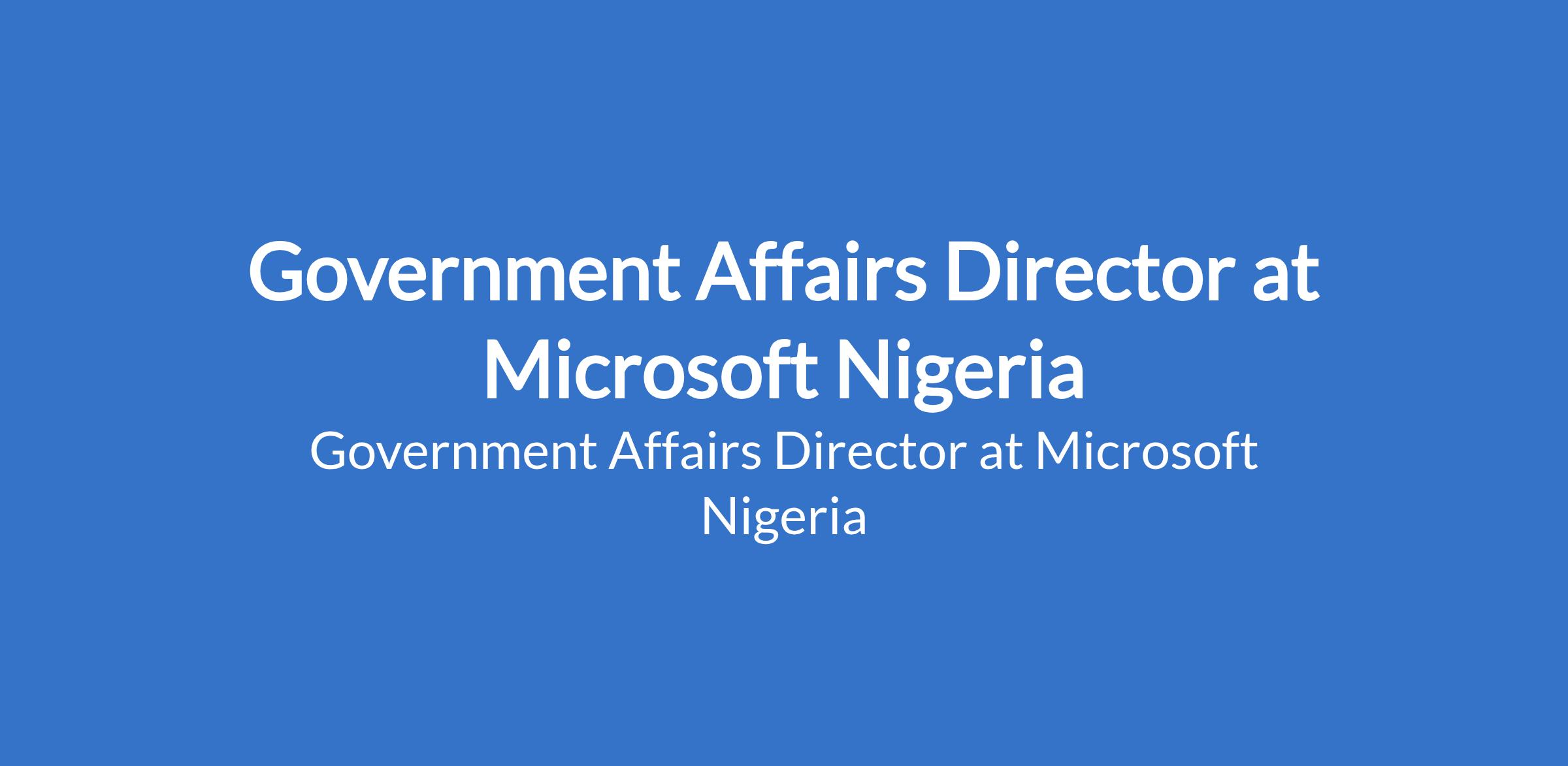 Microsoft Nigeria is recruiting to fill the position of: Government Affairs Director. Interested candidates should possess a Master's Degree in Public Policy, Public Administration, or related field and many years of experience in government affairs, corporate affairs, public policy/government OR a Bachelors Degree in Public Policy, Public Administration, Law, or related field and several years of experience in government affairs, corporate affairs, public policy/government; OR extensive years of experience in these areas.