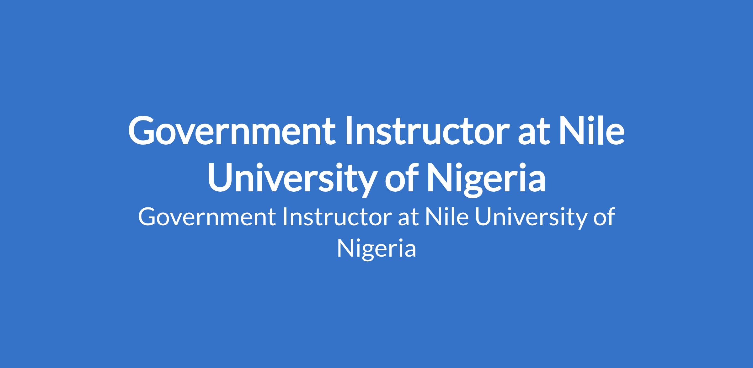 Nile University of Nigeria is recruiting to fill the position of: Government Instructor. The position is located in Abuja (FCT). Interested candidates should possess a Masters Degree and at least 2 years relevant experience in teaching A-level students.