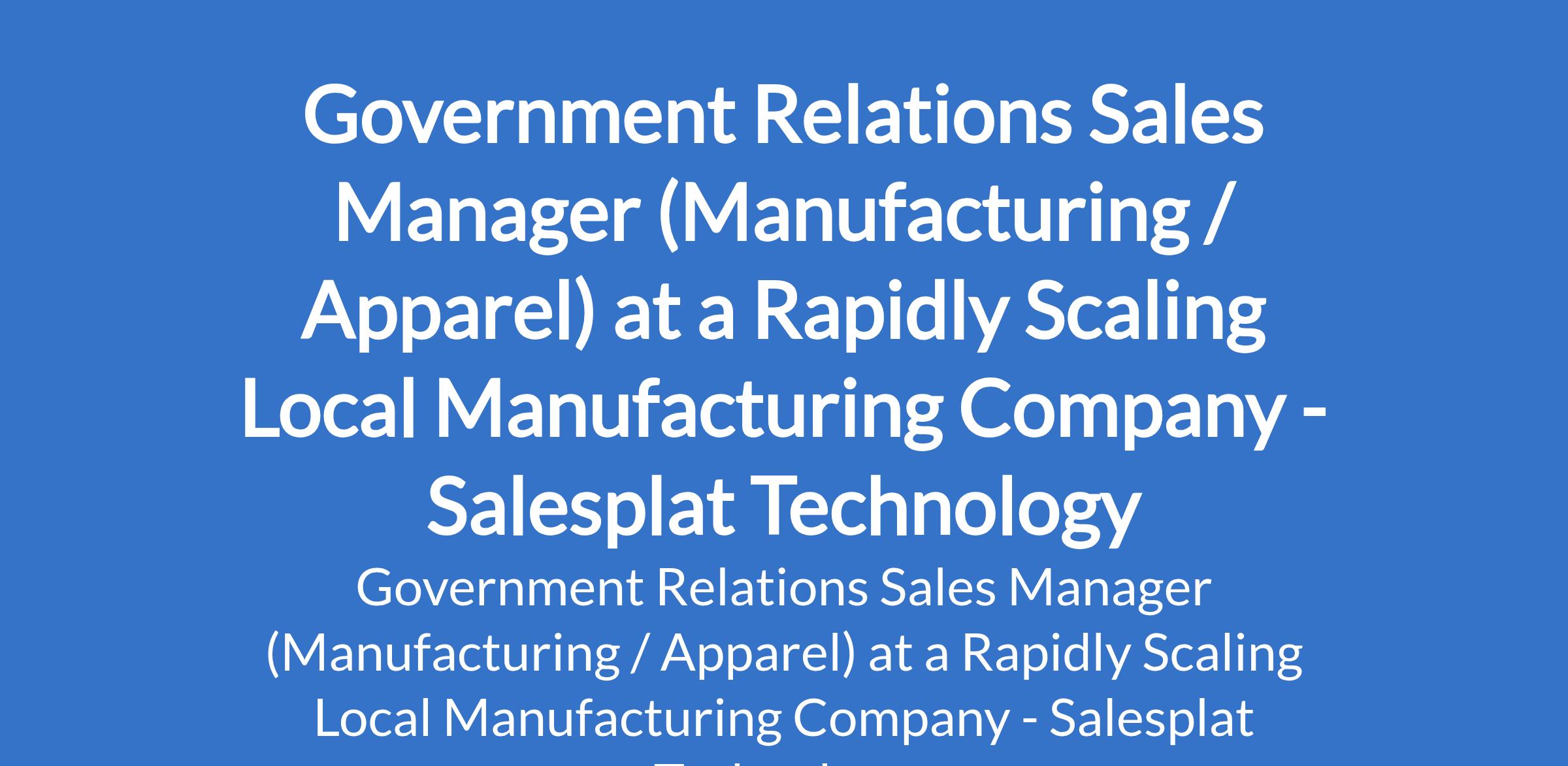 Salesplat Technology - Our Client, a rapidly scaling local manufacturing company is recruiting to fill the position of: Government Relations Sales Manager (Manufacturing / Apparel). The position is located in Lagos State. Salary: N500,000 monthly. Interested candidates should possess a Bachelors Degree in Public Administration, Business, or Law with 5+ Years of Experience in Government Relations, Public Sector Sales, or Manufacturing Procurement.