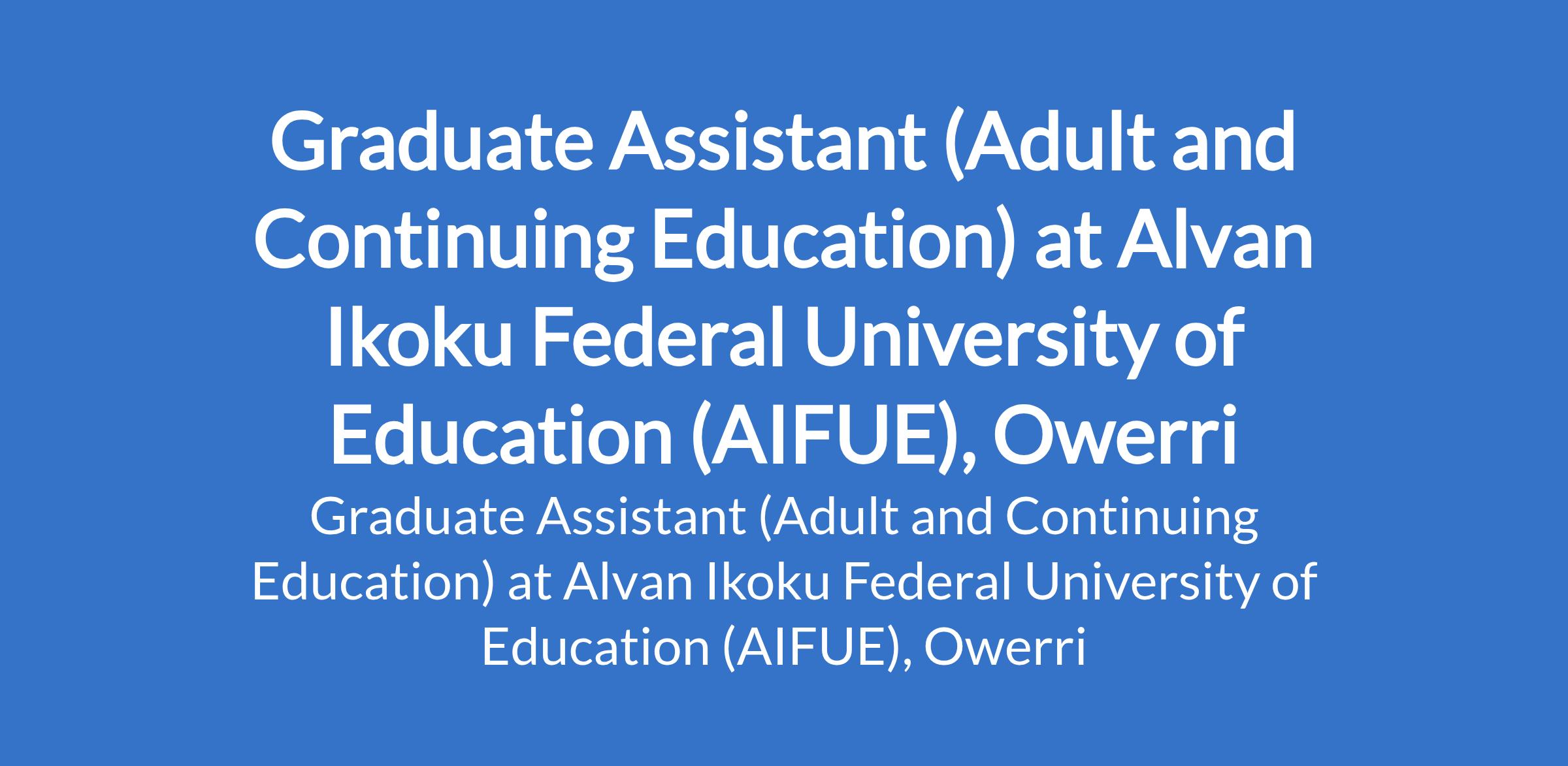 Alvan Ikoku Federal University of Education (AIFUE), Owerri invites applications from suitably qualified candidates for the position of: Graduate Assistant (Adult and Continuing Education). The position is located in Imo State. Interested candidates should possess a First Degree in the relevant field from a recognized university with not less than a Second-Class Upper Division and must show interest in pursuing an academic career.