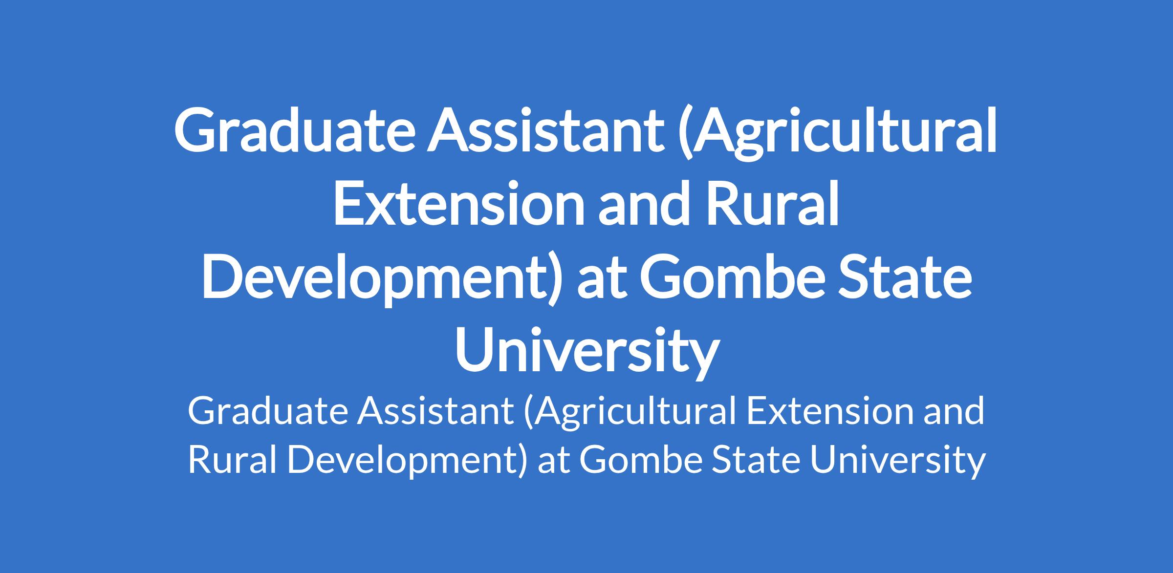 Gombe State University invites applications from suitable candidates to fill the position of: Graduate Assistant (Agricultural Extension and Rural Development). The position is located in Tudun - Wada, Gombe State. Interested candidates should possess a Bachelor's Degree with a minimum of Second Class Upper Division.