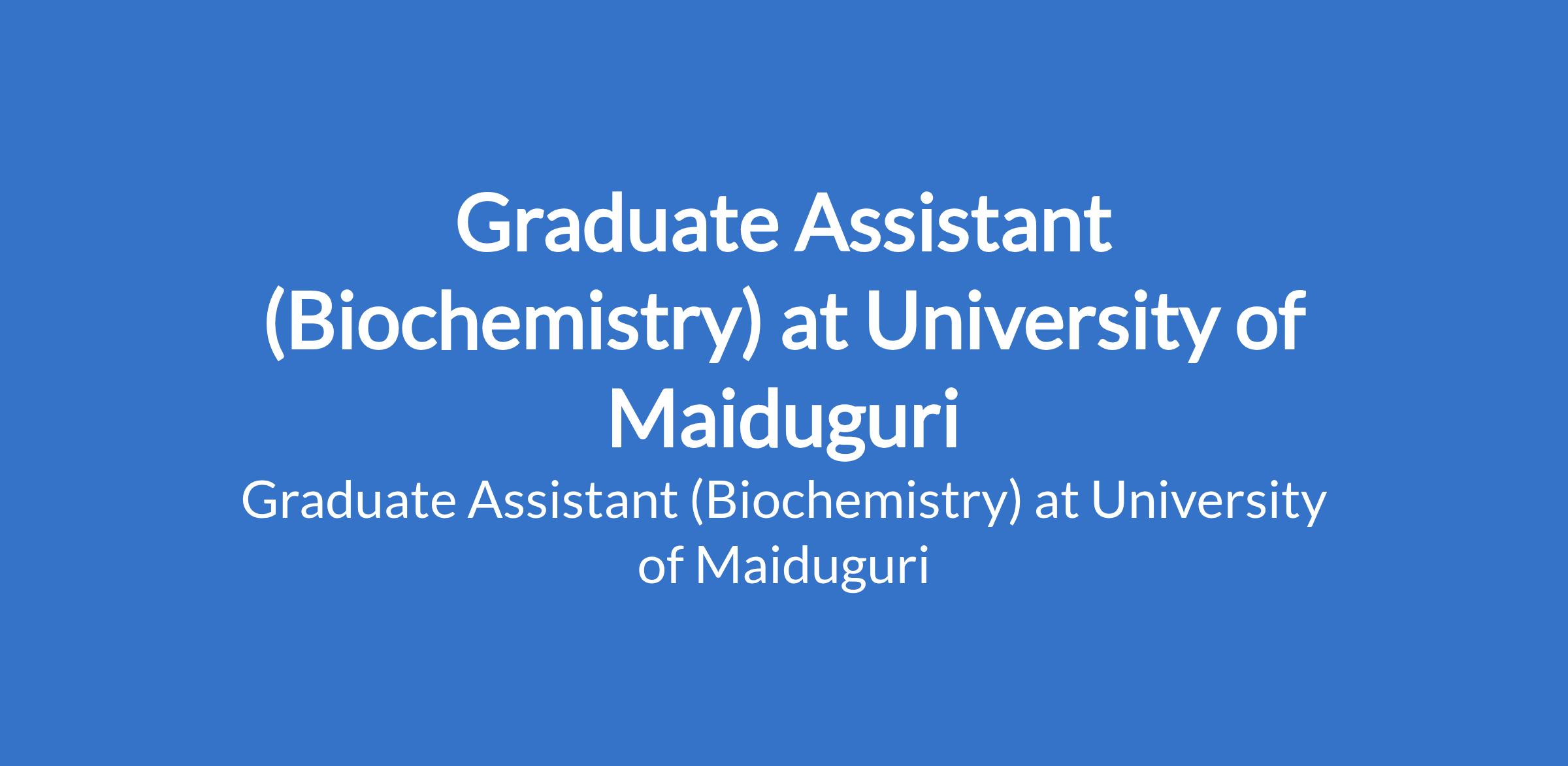 University of Maiduguri invites applications from suitable candidates to fill the position of: Graduate Assistant (Biochemistry). The position is located in Borno State. Interested candidates should possess a First Degree in the relevant field from University of Maiduguri or another recognised institution with NYSC discharge or exemption certificate.