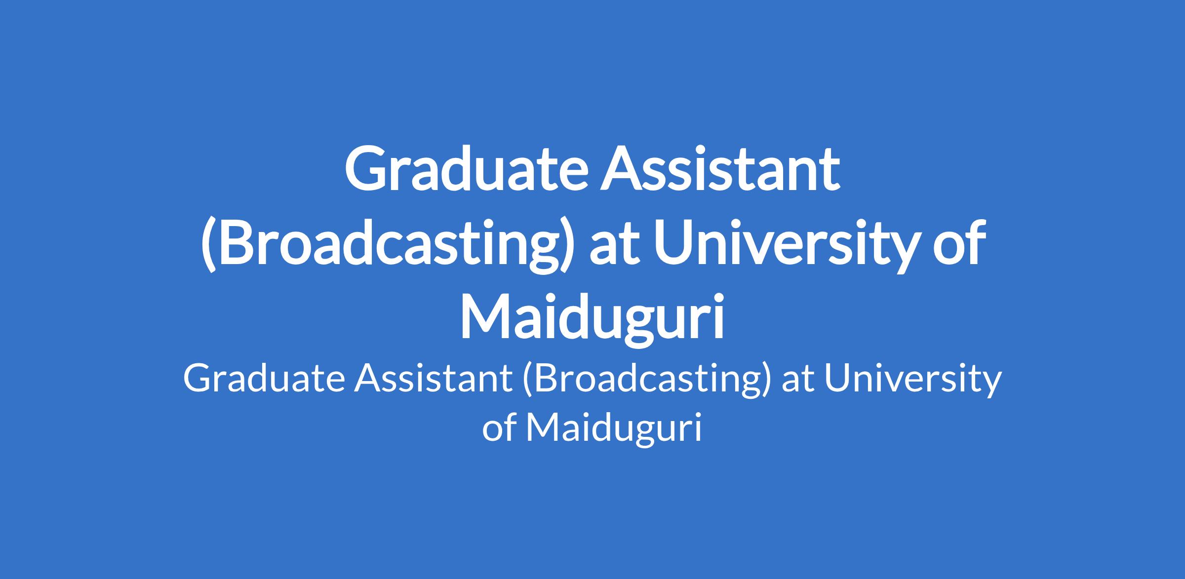 University of Maiduguri invites applications from suitable candidates to fill the position of: Graduate Assistant (Broadcasting). The position is located in Borno State. Interested candidates should possess a First Degree in the relevant field from University of Maiduguri or another recognised institution with NYSC discharge or exemption certificate.