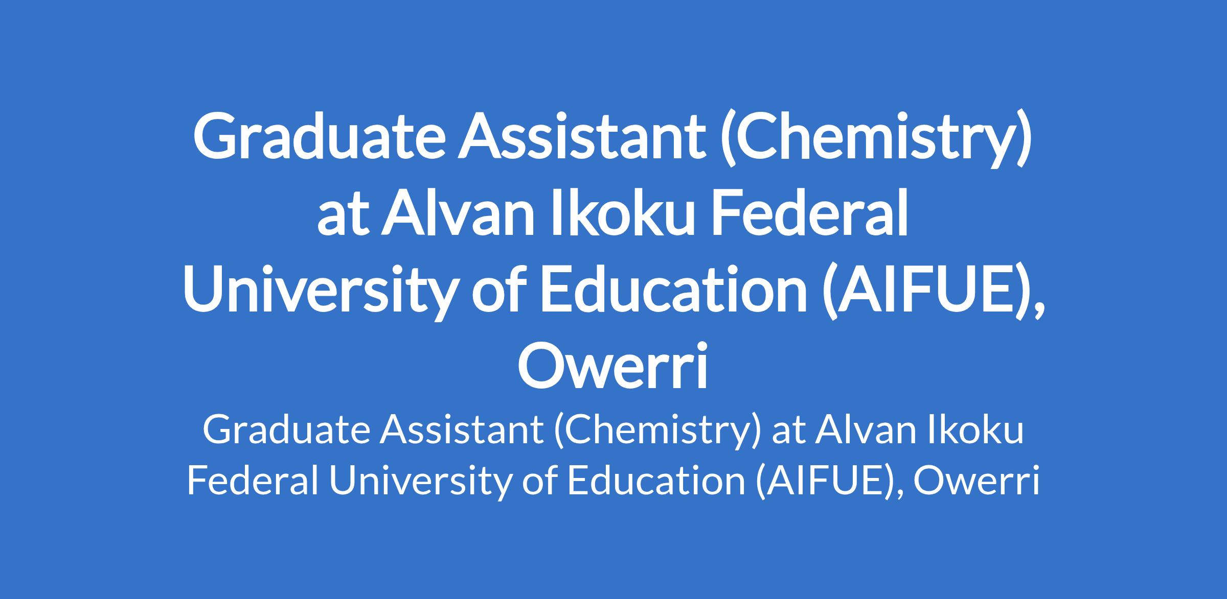 Alvan Ikoku Federal University of Education (AIFUE), Owerri invites applications from suitably qualified candidates for the position of: Graduate Assistant (Chemistry). The position is located in Imo State. Interested candidates should possess a First Degree in the relevant field from a recognized university with not less than Second Class Upper Division, must show interest in pursuing an academic career.