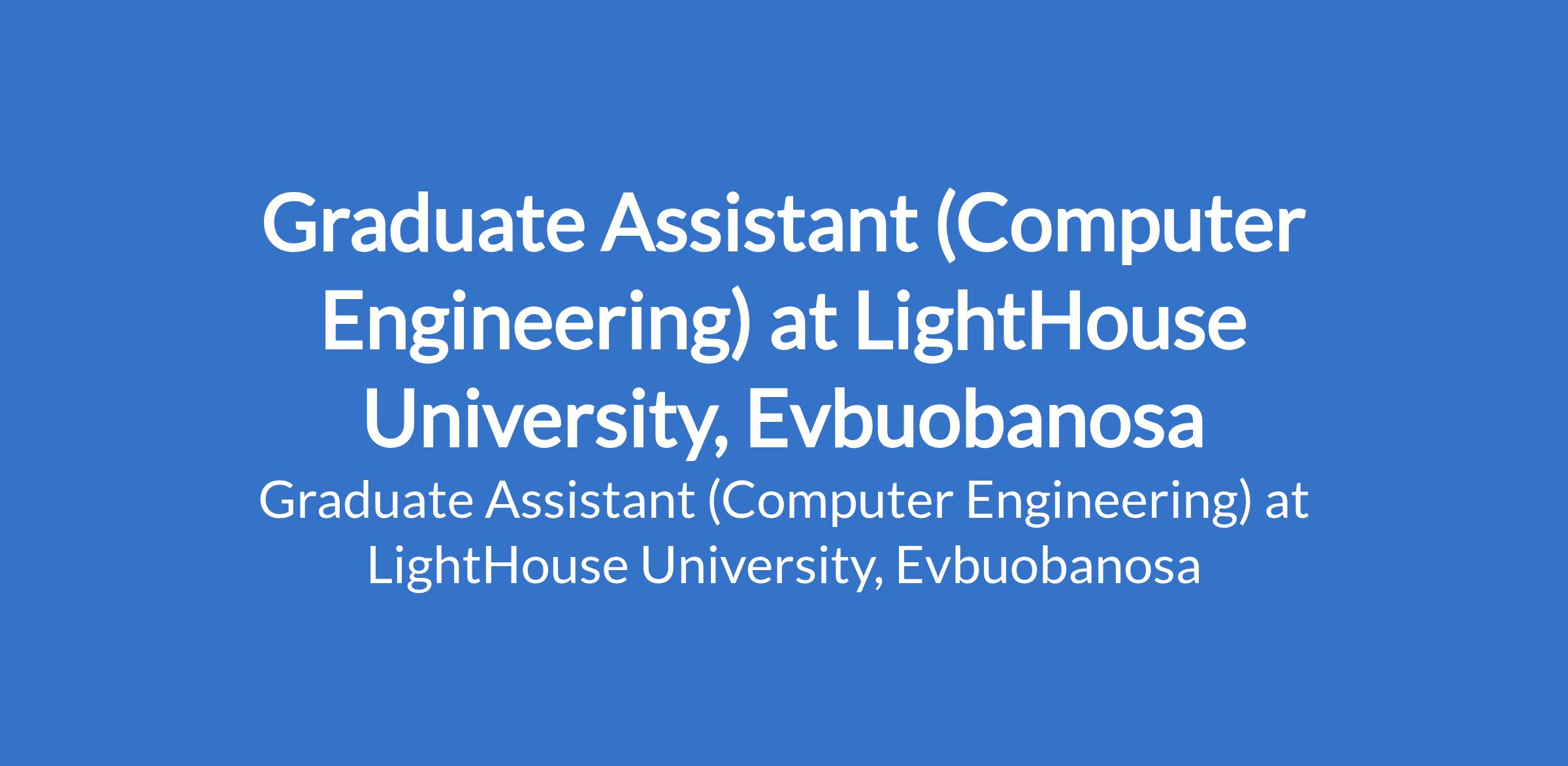 LightHouse University, Evbuobanosa invites applications from suitably qualified candidates to fill the position of: Graduate Assistant (Computer Engineering). The position is located in Edo State. Interested candidates should possess a Degree with a minimum of Second Class (Upper Division) in the relevant field.