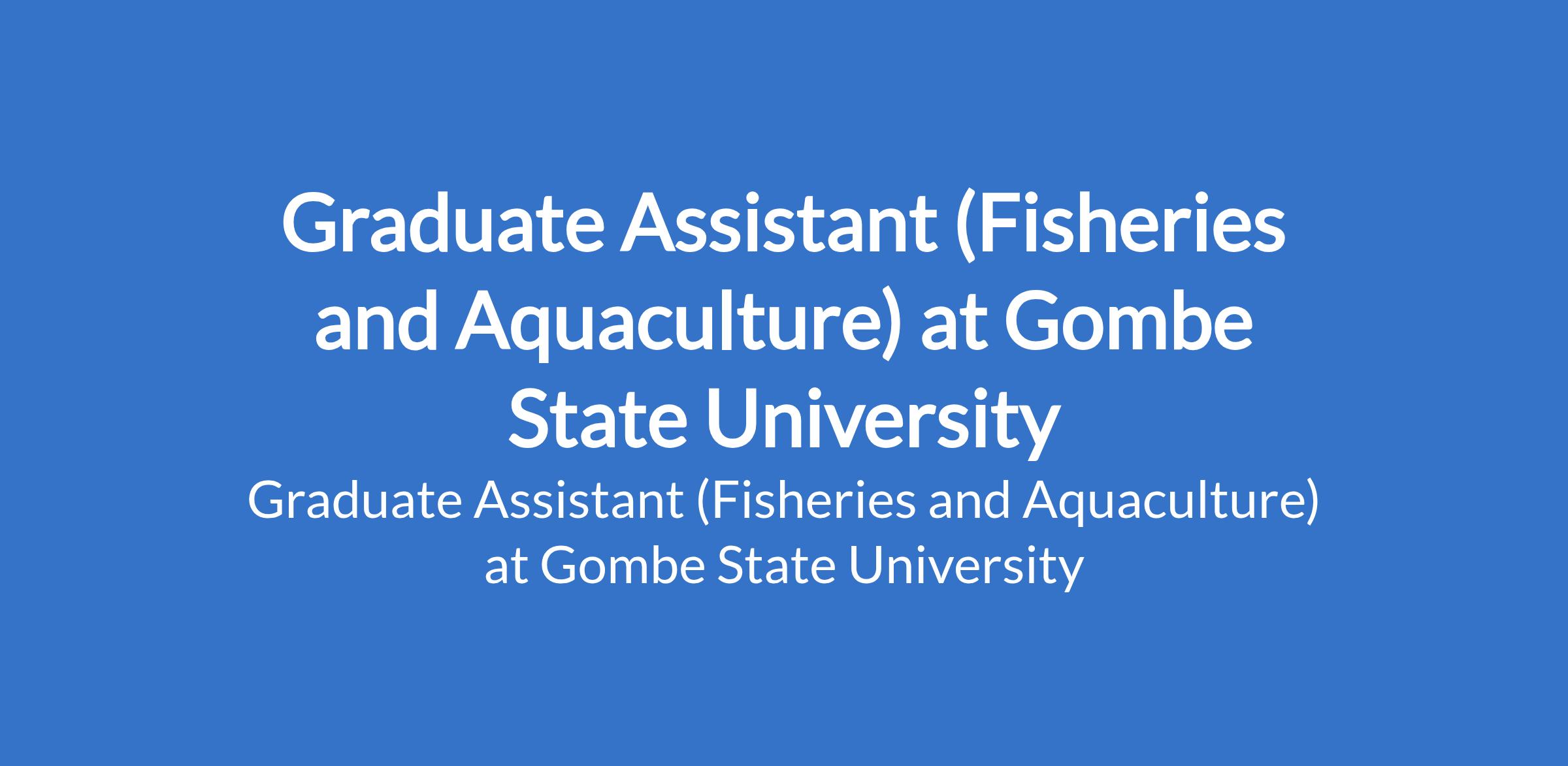 Gombe State University invites applications from suitable candidates to fill the position of: Graduate Assistant (Fisheries and Aquaculture). The position is located in Tudun - Wada, Gombe State. Interested candidates should possess a Bachelor's Degree with a minimum of Second Class Upper Division.