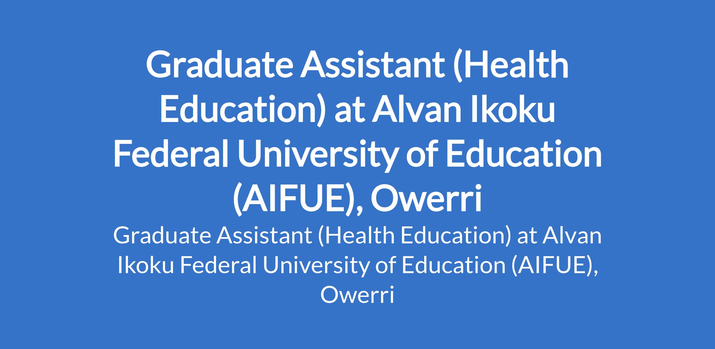 Alvan Ikoku Federal University of Education (AIFUE), Owerri invites applications from suitably qualified candidates for the position of: Graduate Assistant (Health Education). The position is located in Imo State. Interested candidates should possess a First Degree in the relevant field from a recognized university with not less than Second Class Upper Division, must show interest in pursuing an academic career.