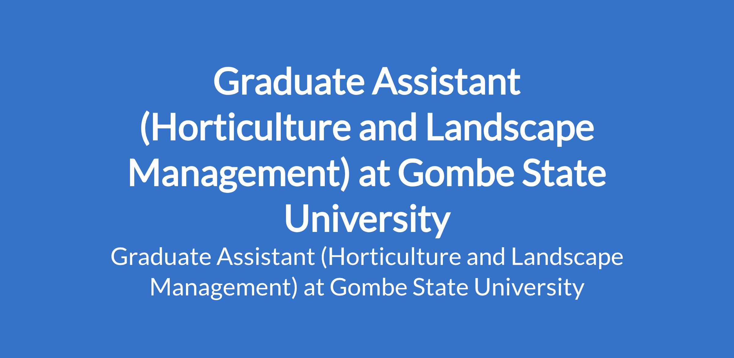Gombe State University invites applications from suitable candidates to fill the position of: Graduate Assistant (Horticulture and Landscape Management). The position is located in Tudun - Wada, Gombe State. Interested candidates should possess a Bachelor's Degree with a minimum of Second Class Upper Division.