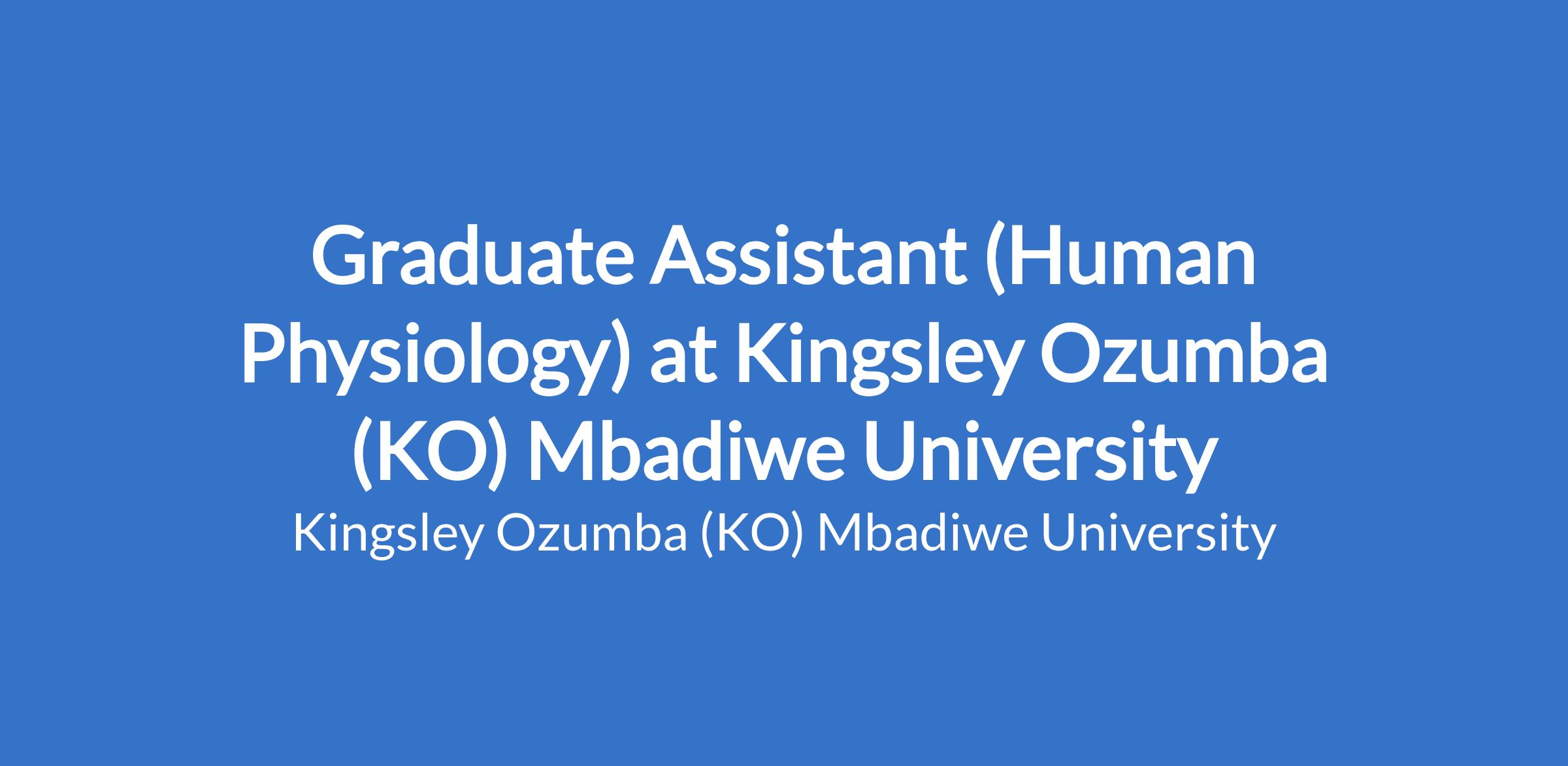 Graduate Assistant (Human Physiology) at Kingsley Ozumba (KO) Mbadiwe University