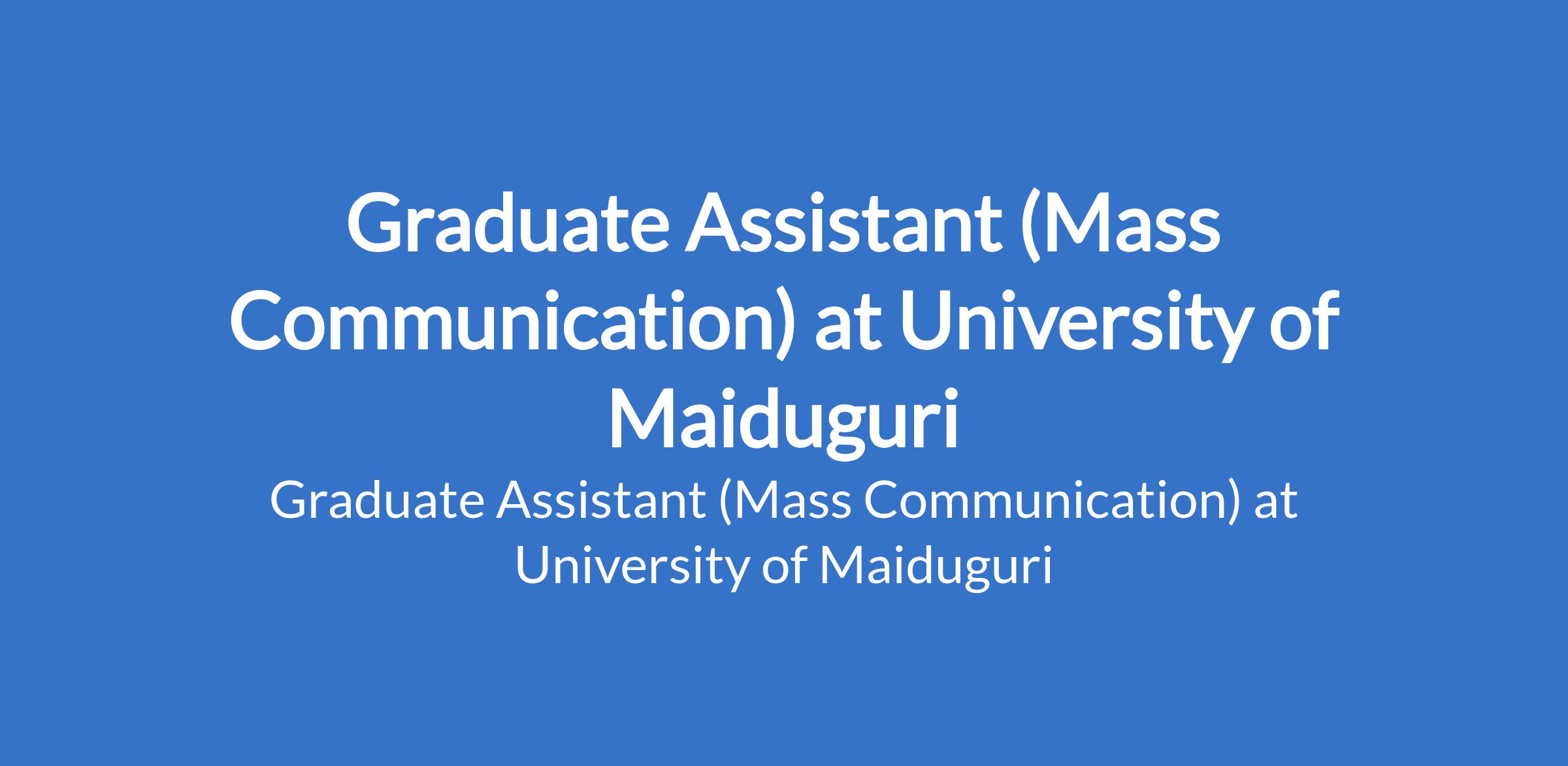 University of Maiduguri invites applications from suitable candidates to fill the position of: Graduate Assistant (Mass Communication). The position is located in Borno State. Interested candidates should possess a First Degree in the relevant field from University of Maiduguri or another recognised institution with NYSC discharge or exemption certificate.