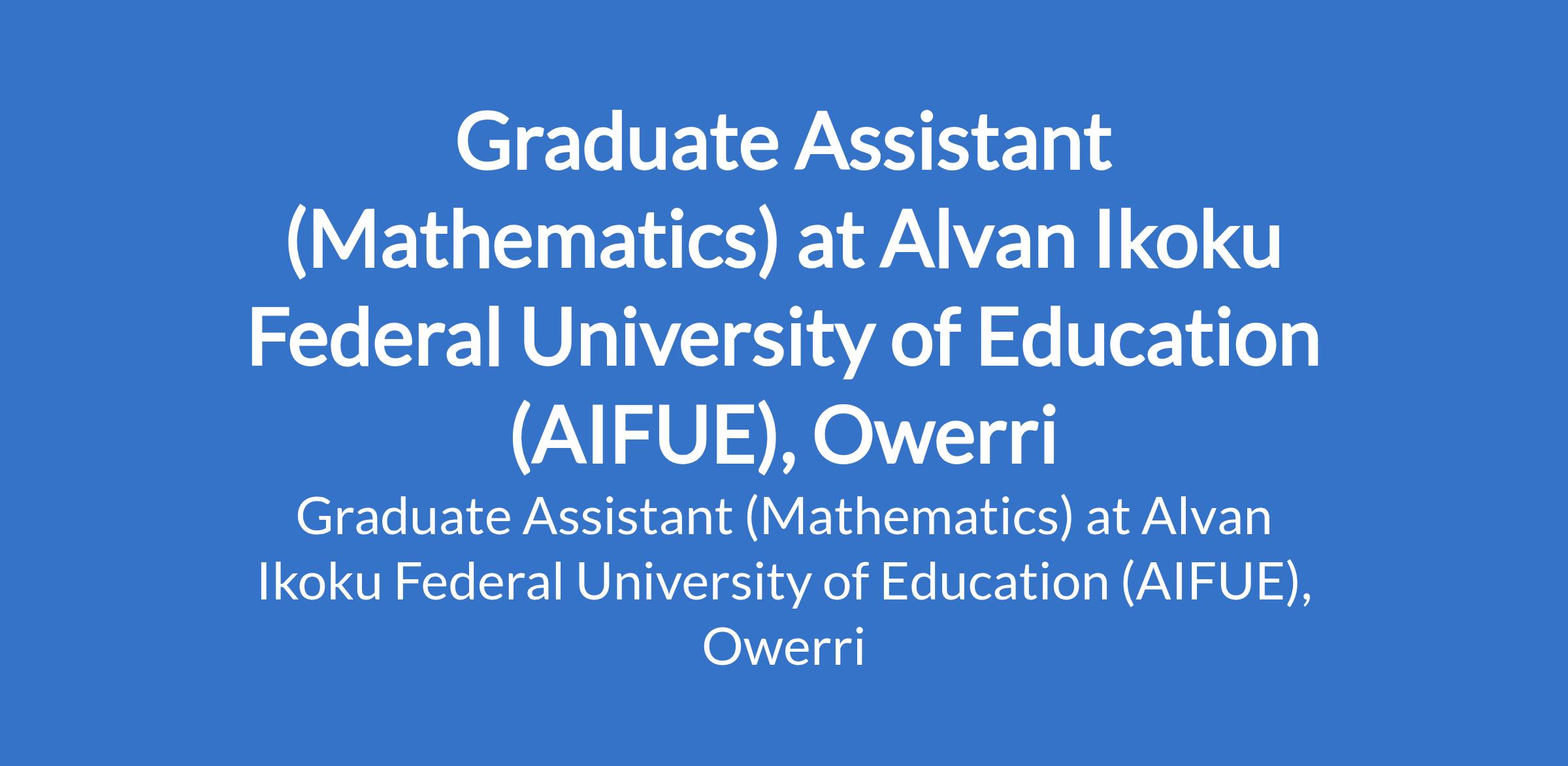 Alvan Ikoku Federal University of Education (AIFUE), Owerri invites applications from suitably qualified candidates for the position of: Graduate Assistant (Mathematics). The position is located in Imo State. Interested candidates should possess a First Degree in the relevant field from a recognized university with not less than Second Class Upper Division, and must show interest in pursuing an academic career.
