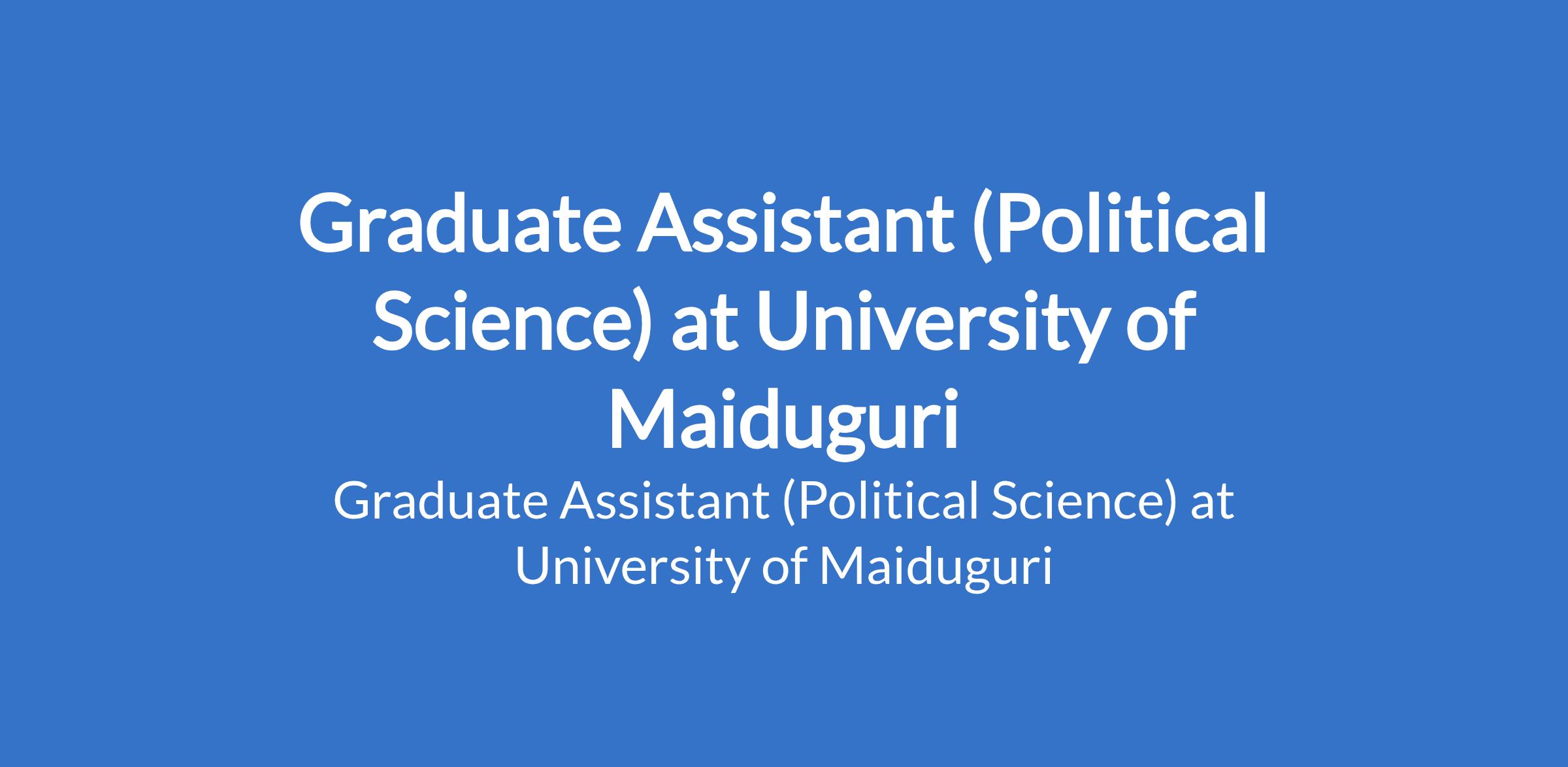 University of Maiduguri invites applications from suitable candidates to fill the position of: Graduate Assistant (Political Science). The position is located in Borno State. Interested candidates should possess a First Degree in the relevant field from University of Maiduguri or another recognised institution with NYSC discharge or exemption certificate.