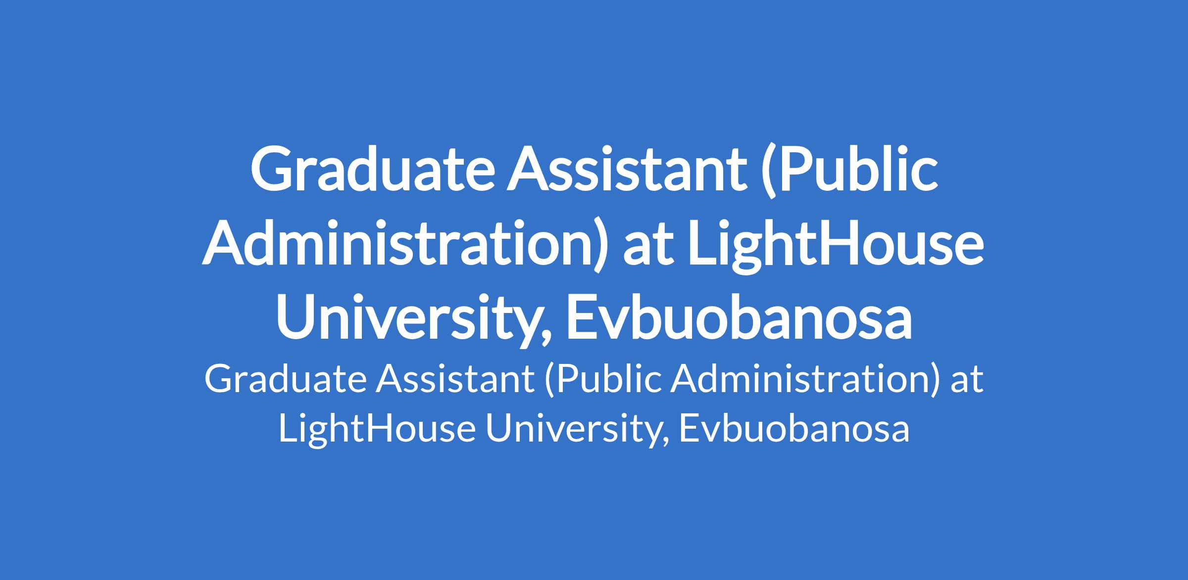 LightHouse University, Evbuobanosa invites applications from suitably qualified candidates to fill the position of: Graduate Assistant (Public Administration). The position is located in Edo State. Interested candidates should possess a Degree with a minimum of Second Class (Upper Division) in the relevant field.
