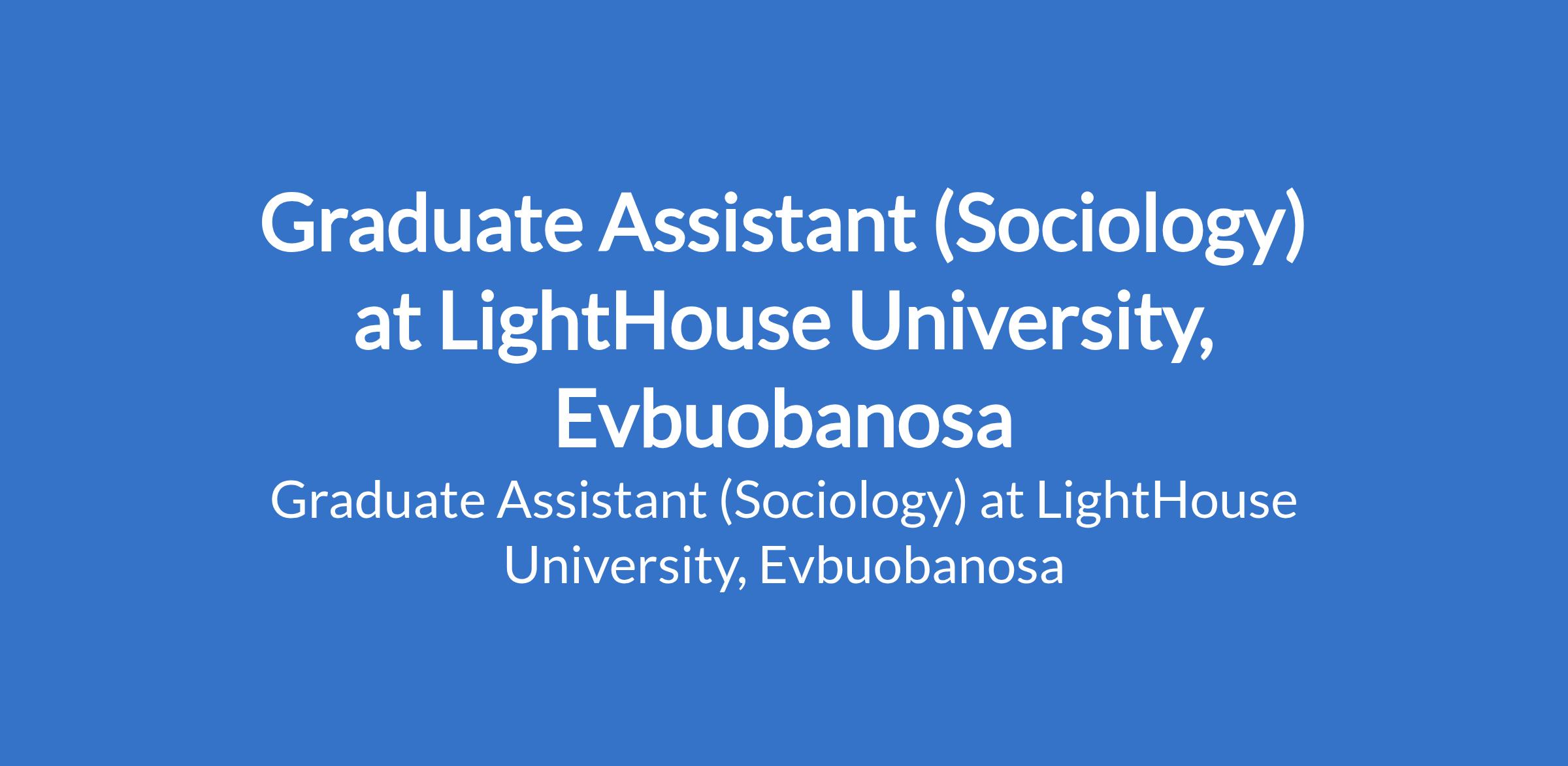 LightHouse University, Evbuobanosa invites applications from suitably qualified candidates to fill the position of: Graduate Assistant (Sociology). The position is located in Edo State. Interested candidates should possess a Degree with a minimum of Second Class (Upper Division) in the relevant field.