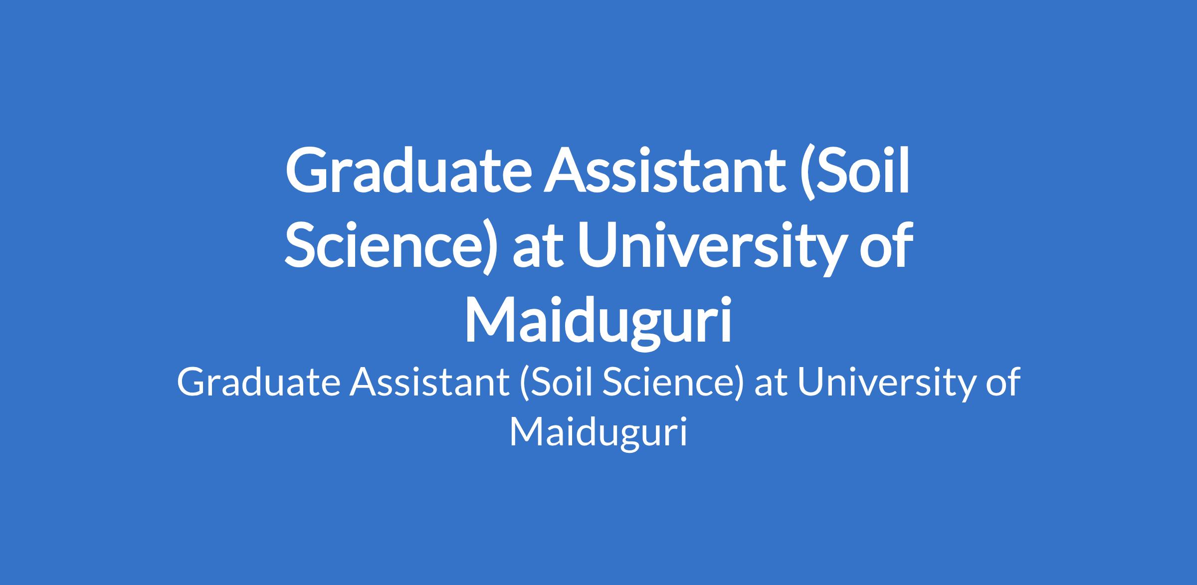 University of Maiduguri invites applications from suitable candidates to fill the position of: Graduate Assistant (Soil Science). The position is located in Borno State. Interested candidates should possess a First Degree in the relevant field from University of Maiduguri or another recognised institution with a minimum of Second Class Upper Division and NYSC discharge or exemption certificate.