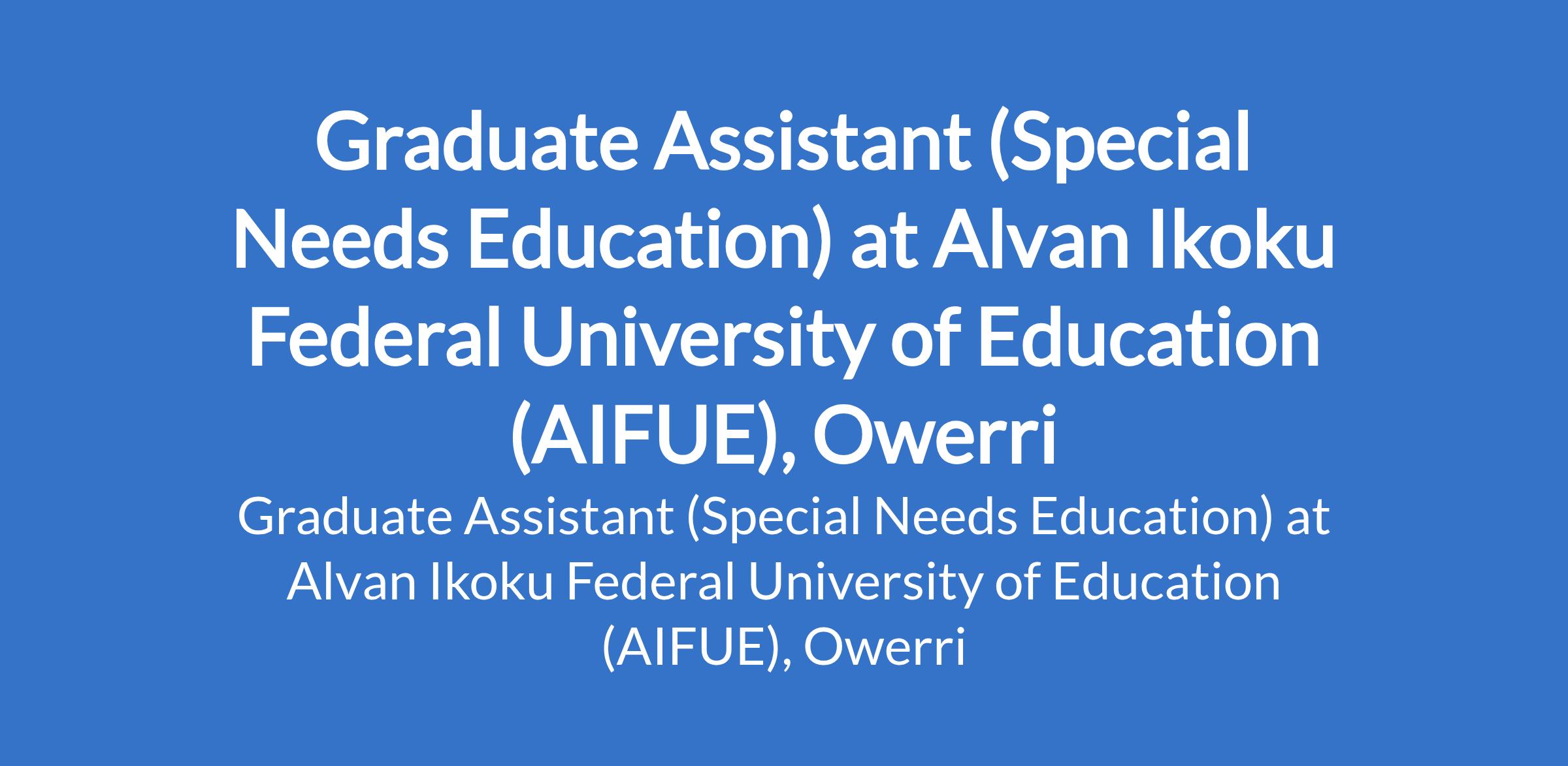 Alvan Ikoku Federal University of Education (AIFUE), Owerri invites applications from suitably qualified candidates for the position of: Graduate Assistant (Special Needs Education). The position is located in Imo State. Interested candidates should possess a First Degree in the relevant field from a recognized university with not less than a Second-Class Upper Division and must show interest in pursuing an academic career.