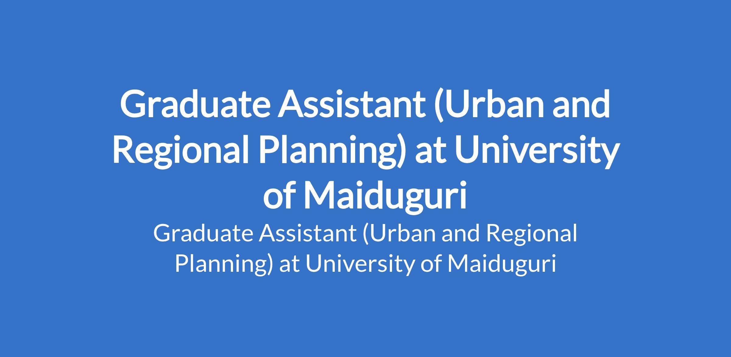 University of Maiduguri invites applications from suitable candidates to fill the position of: Graduate Assistant (Urban and Regional Planning). The position is located in Borno State. Interested candidates should possess a First Degree in the relevant field from University of Maiduguri or another recognised institution with a minimum of Second Class Upper Division and NYSC discharge or exemption certificate.