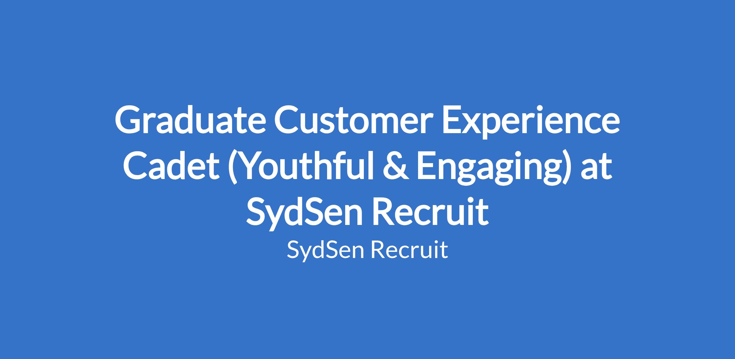 Graduate Customer Experience Cadet (Youthful & Engaging) at SydSen Recruit
