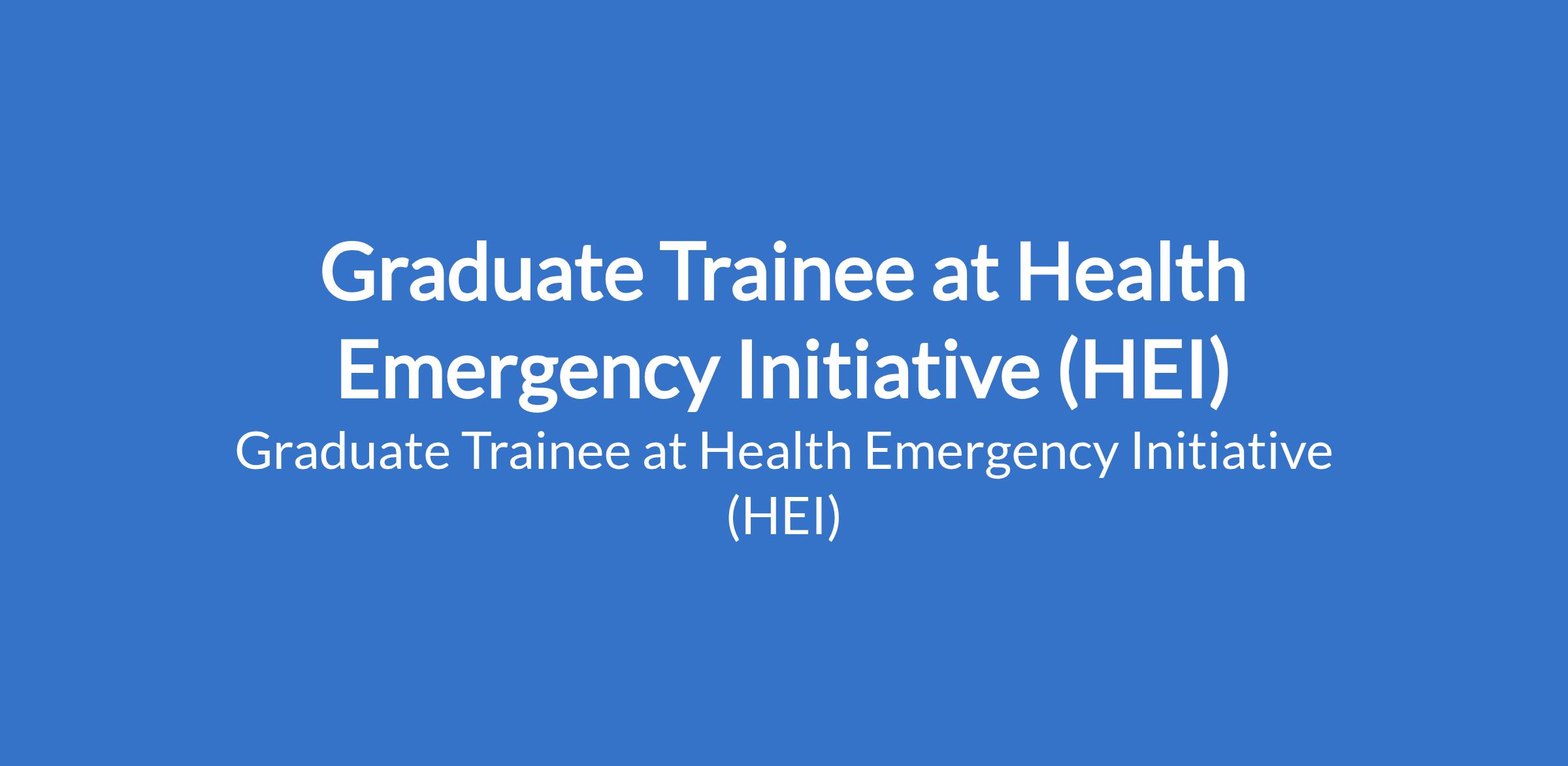 Health Emergency Initiative (HEI) is recruiting to fill the position of: Graduate Trainee. The position is located in Surulere, Lagos State. Salary: N80,000 - N100,000 monthly. Interested candidates should possess an HND / BSc Degree in the relevant field.