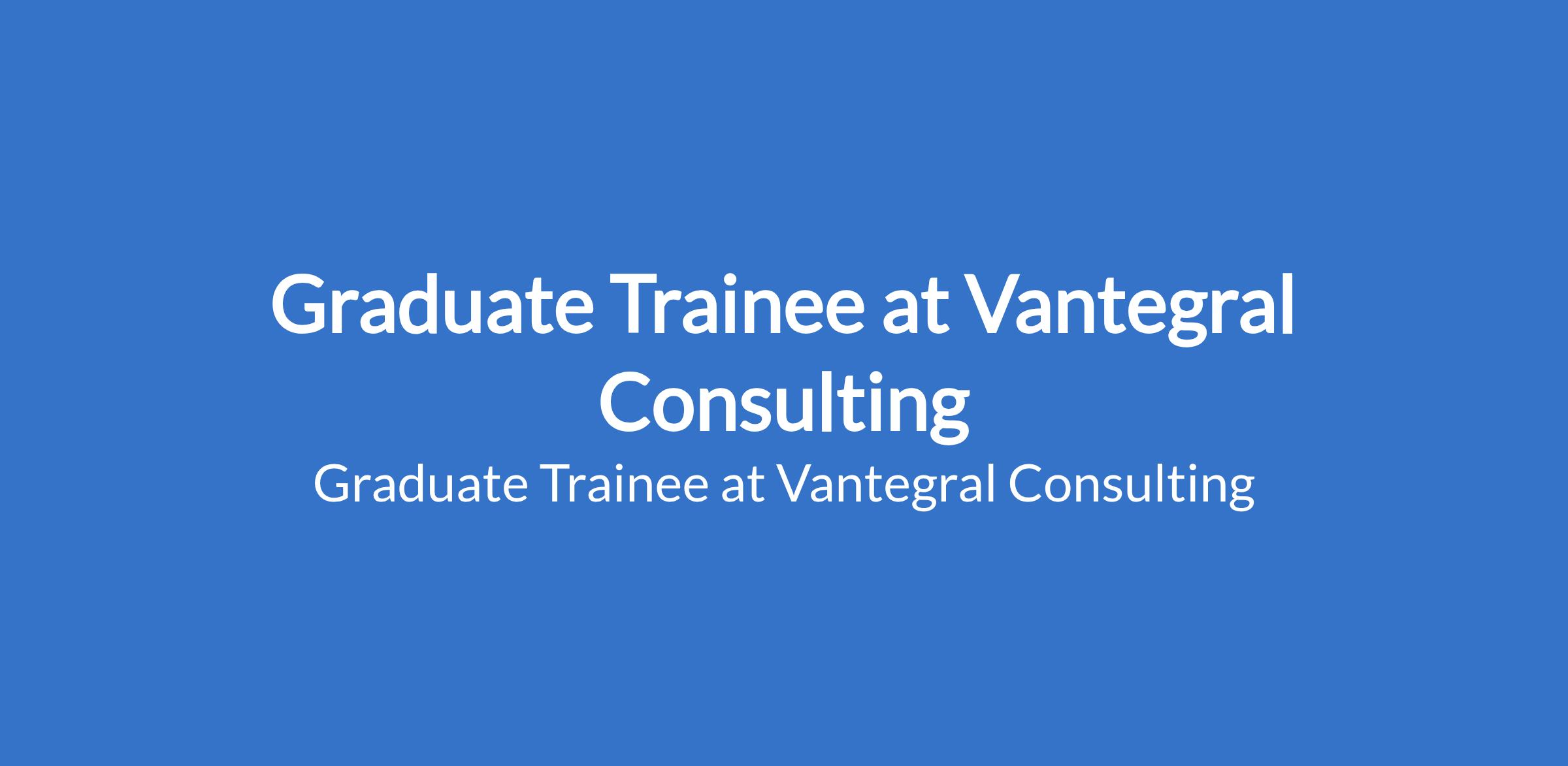 Vantegral Consulting is recruiting to fill the position of: Graduate Trainee. The position is located in Lekki, Lagos State. Salary: N100,000 monthly. Interested candidates should possess B.Sc or HND from a recognized institution with 0 2 years post-graduation experience.
