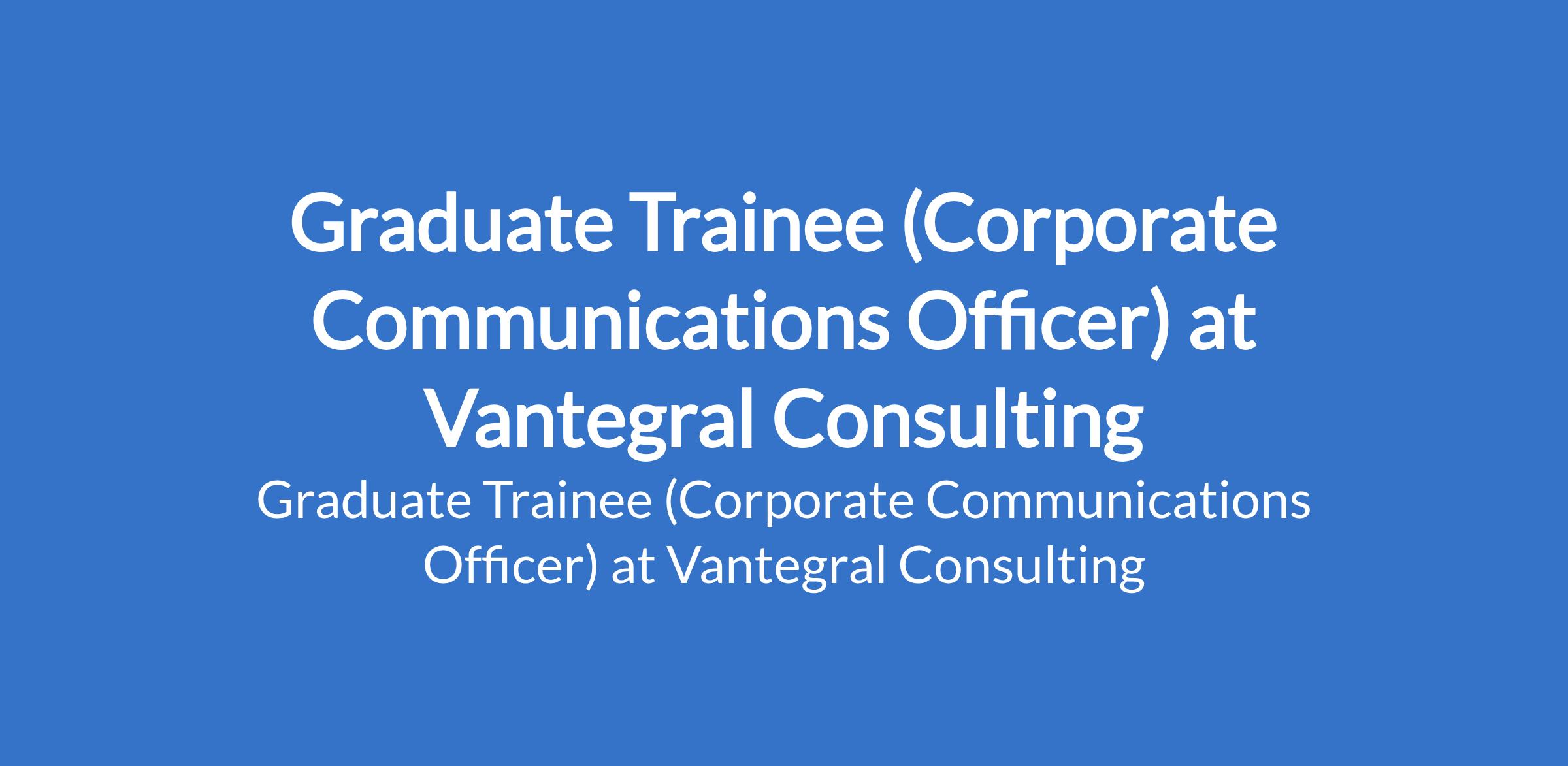 Vantegral Consulting is recruiting to fill the position of: Graduate Trainee (Corporate Communications Officer). The position is located in Lekki, Lagos State. Interested candidates should possess a Bachelors Degree in Mass Communication, Communications, Public Relations, Marketing, or a related field and must have completed NYSC (Discharge Certificate required) with 0 2 years relevant experience.