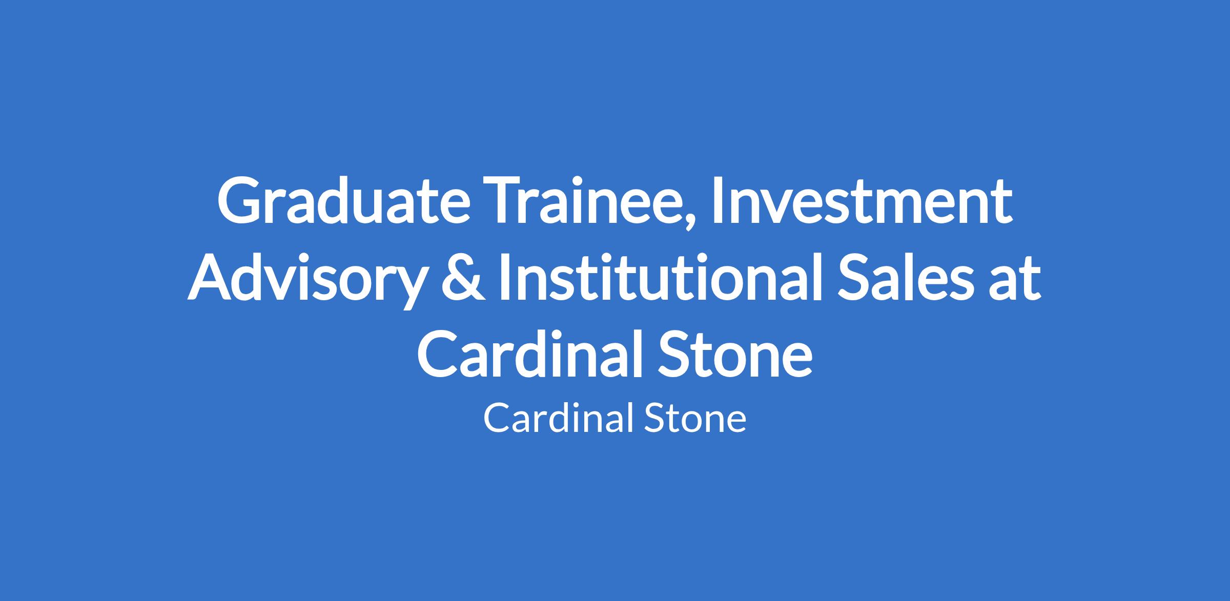 Graduate Trainee, Investment Advisory & Institutional Sales at Cardinal Stone