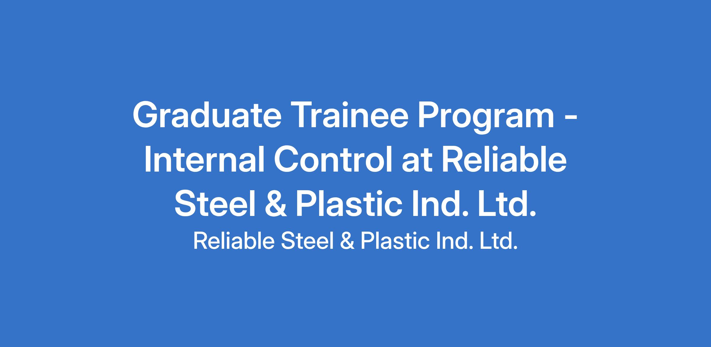 Graduate Trainee Program - Internal Control at Reliable Steel & Plastic Ind. Ltd.