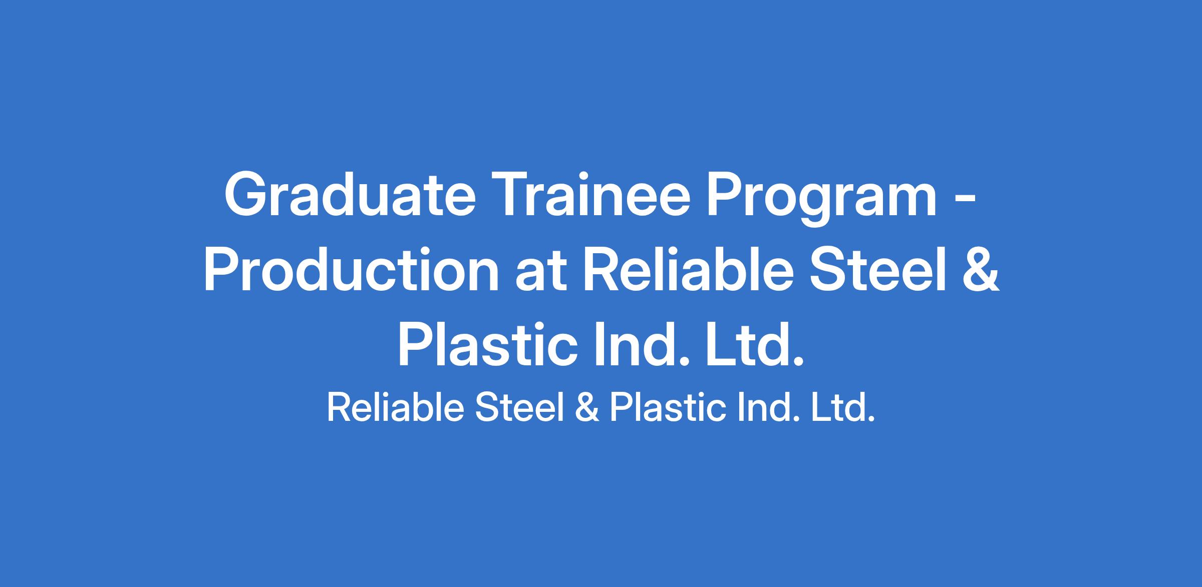Graduate Trainee Program - Production at Reliable Steel & Plastic Ind. Ltd.