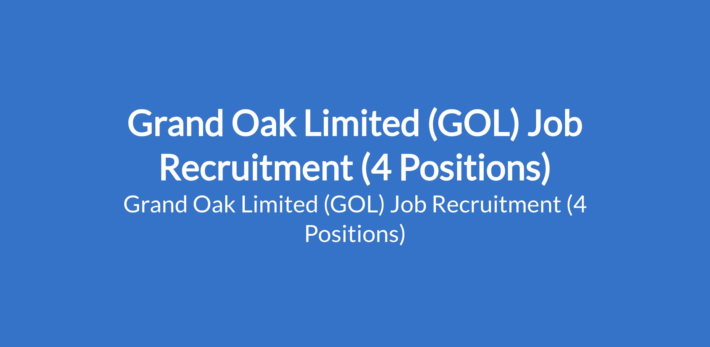 Grand Oak Limited (GOL) Job Recruitment (4 Positions)