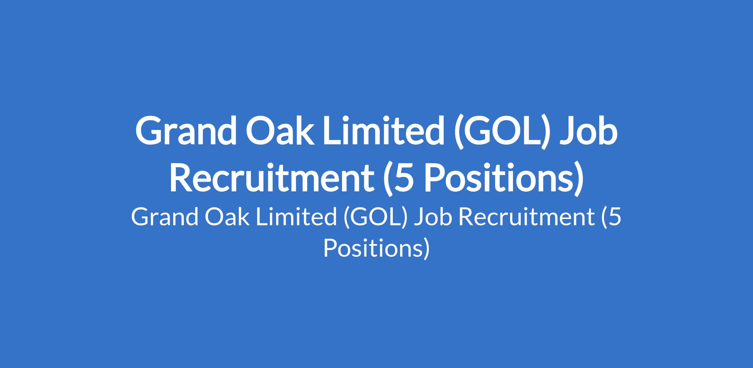 Grand Oak Limited (GOL) Job Recruitment (5 Positions)