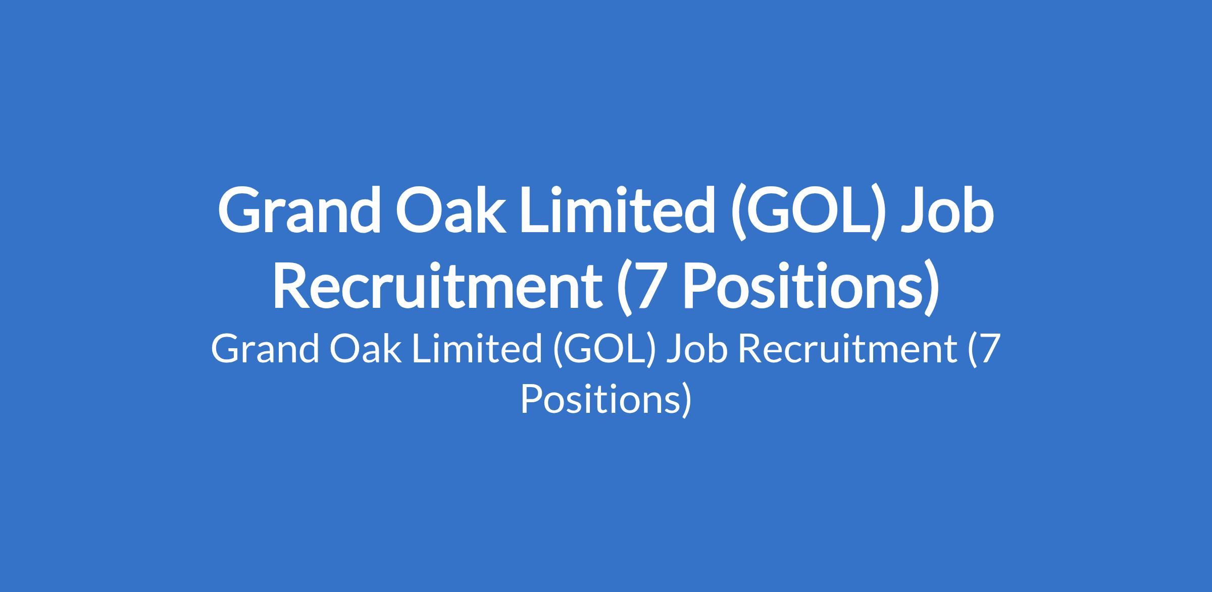 Grand Oak Limited (GOL) is recruiting suitable candidates to fill the following positions in Ogun and Lagos States: Utility Technician; Electrical Technician; Health, Safety and Environment (HSE) Officer; Quality Line Inspector; Territory Sales Manager; Machine Operator; and Regional Sales Capability Manager.