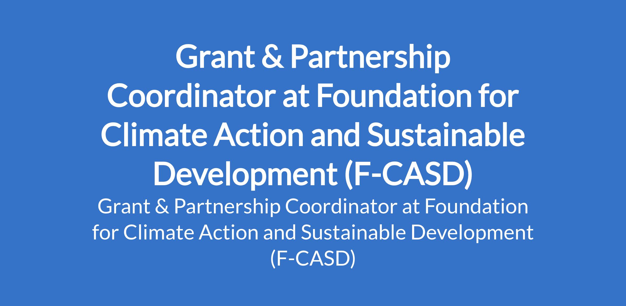 Foundation for Climate Action and Sustainable Development (F-CASD) is recruiting to fill the position of: Grant & Partnership Coordinator. The position is located in Borno State. Interested candidates should possess a Bachelors Degree in International Development, Social Sciences, Business Administration, or related fields with 5+ years of experience in grant writing, fundraising, and partnership management, preferably within NGOs or development organizations.