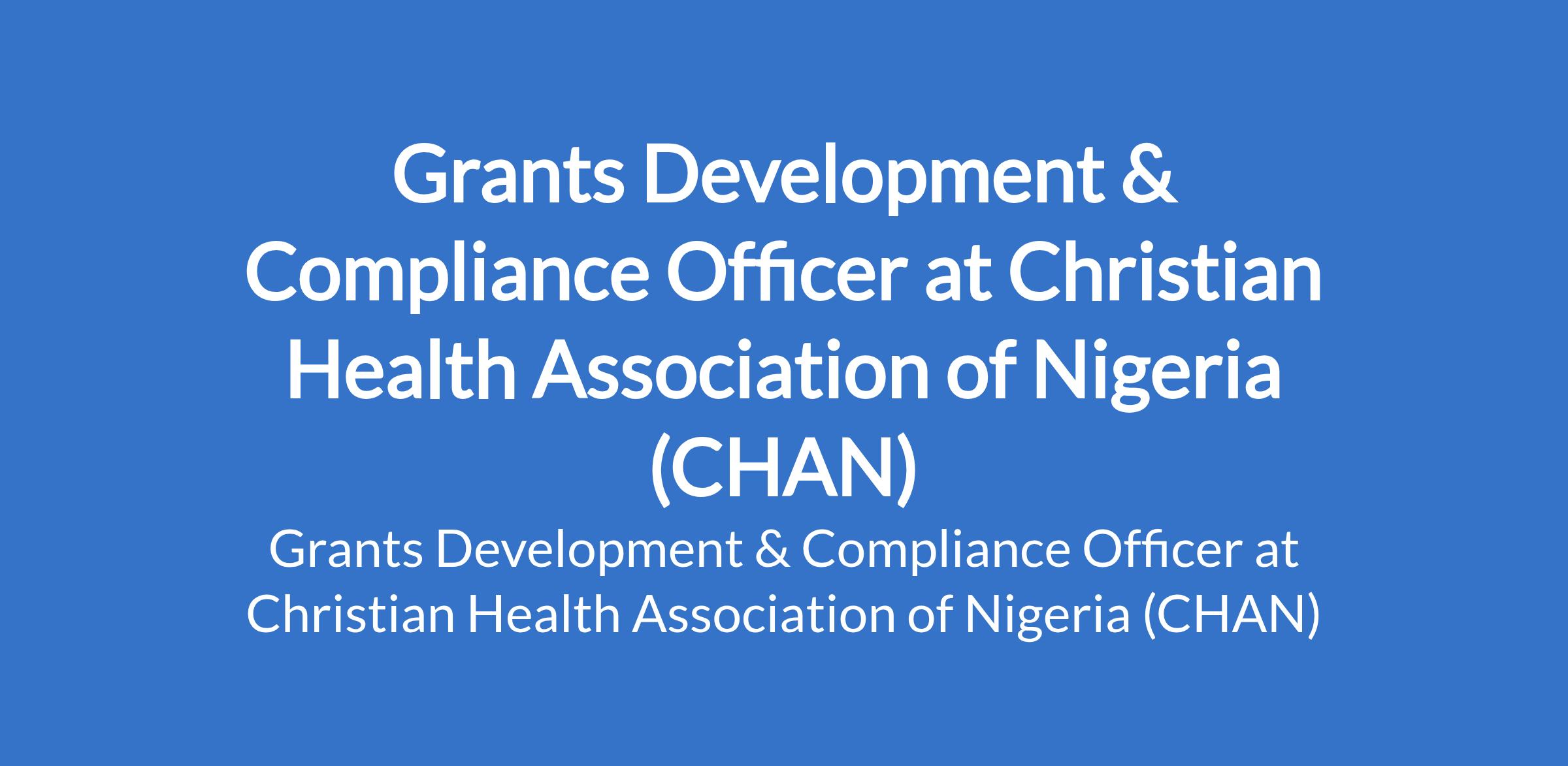 Christian Health Association of Nigeria (CHAN) is recruiting to fill the position of: Grants Development & Compliance Officer. Interested candidates should possess a Bachelors Degree in Development Studies, Public Health, Public Administration, Social Sciences, or a related field with 35 years of experience in grants management, resource mobilisation, or proposal development within the NGO/development sector.