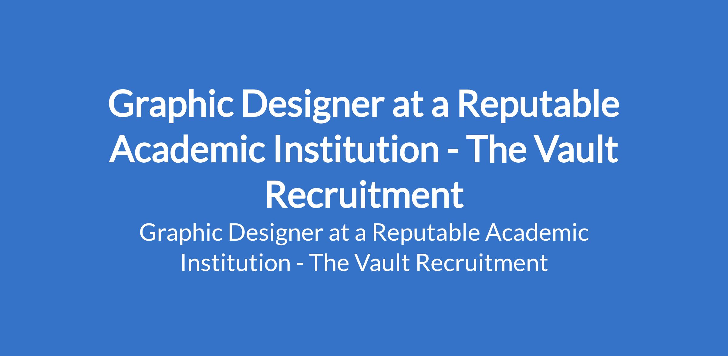 The Vault Recruitment (TVR) - Our client, a reputable academic institution is recruiting to fill the position of: Graphic Designer. The position is located in Magodo Phase 2, Lagos State. Interested candidates should possess relevant qualifications with a minimum of 2 years experience as a Graphics Designer or in a similar role and must be available to resume immediately