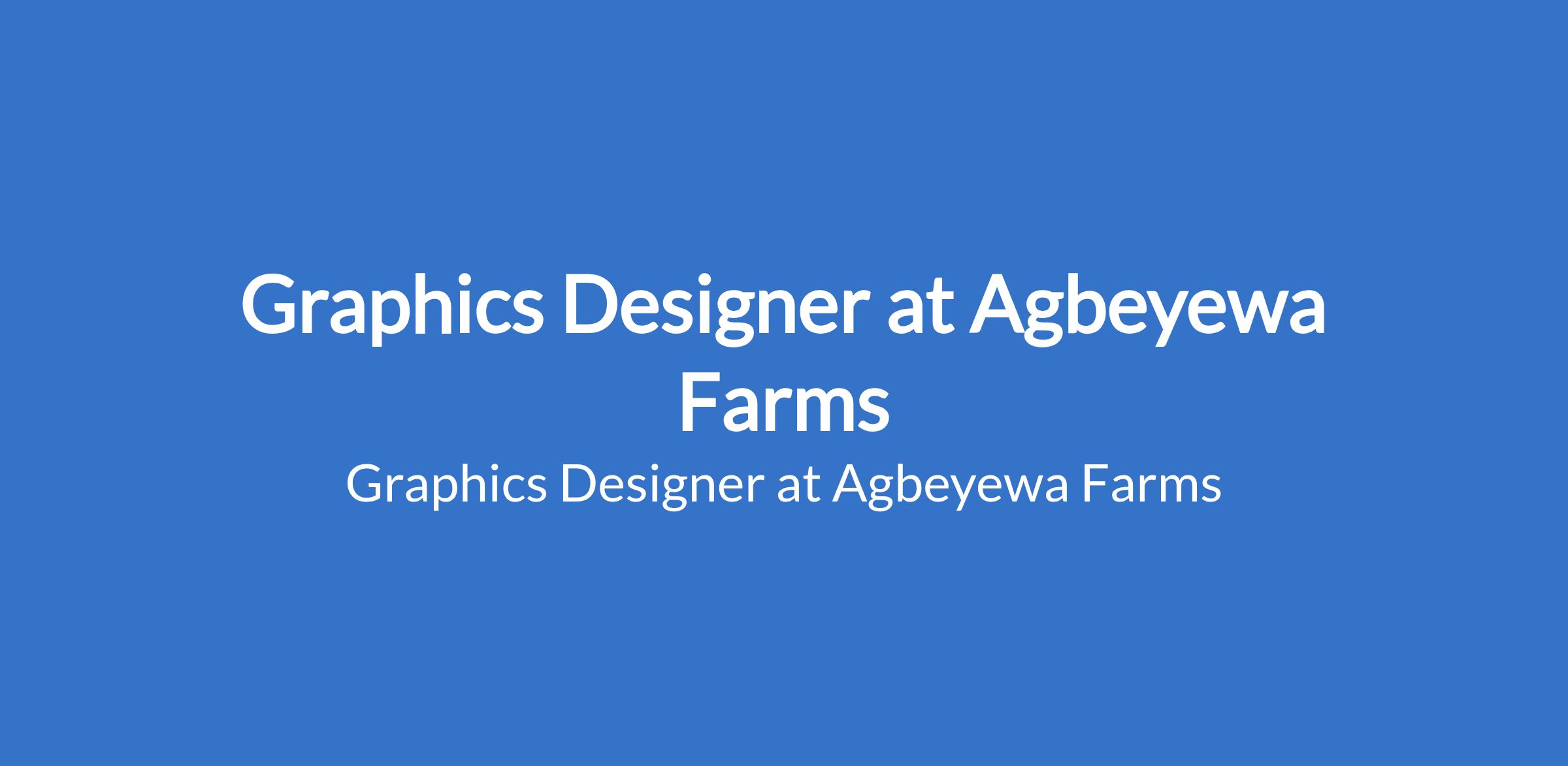 Agbeyewa Farms is recruiting to fill the position of: Graphic Designer. The position is located in Ondo State. Interested candidates should possess a Bachelors Degree in Graphic Design, Visual Arts, or related field with 25 years experience in graphic design, preferably in a structured business environment.