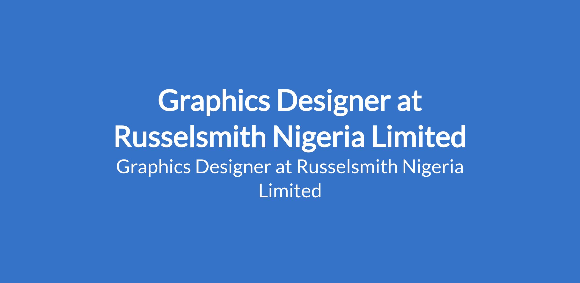 Russelsmith Nigeria Limited is recruiting to fill the position of: Graphics Designer. The position is located in Lagos State. Interested candidates should possess a Bachelors Degree or HND in Graphic Design, Fine Arts, Visual Communication, or a related field with 35 years of experience in graphic design or a related creative role.